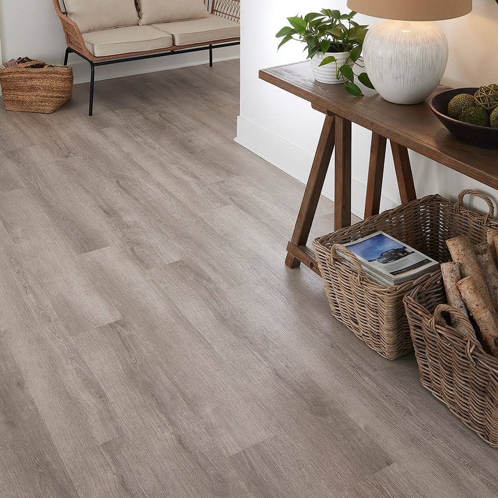 STAINMASTER Barnes Oak 12-mil x 7-3/32-in W x 47-in L Waterproof Interlocking Luxury Vinyl Plank Flooring in Gray | LSM02-920