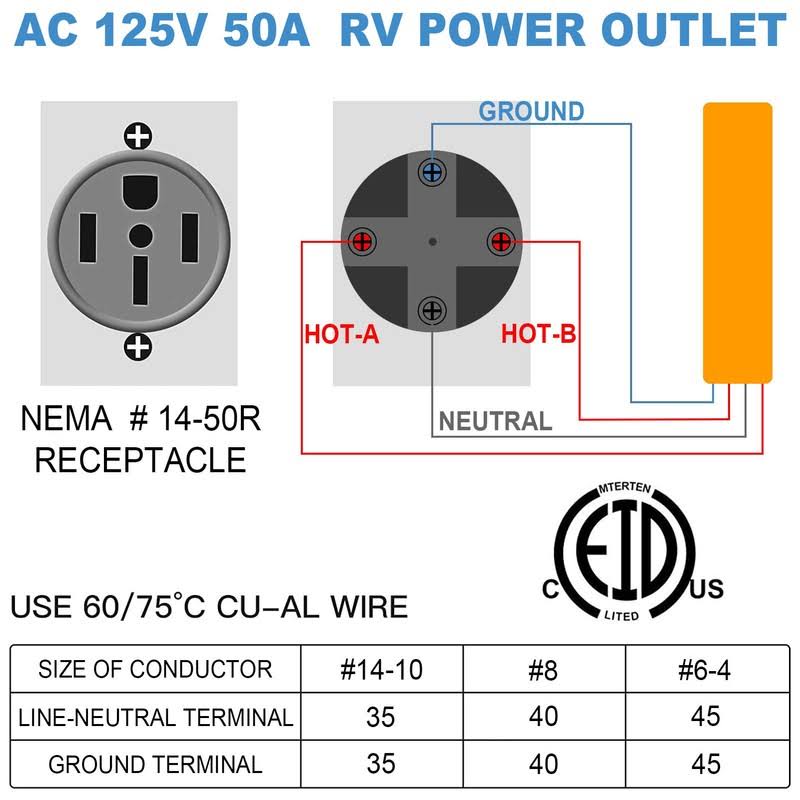 EXCELFU 50 Amp 125/250 Volt RV Power Outlet Box, Enclosed Lockable Weatherproof NEMA 14-50R Outdoor Electrical Receptacle Panel, 50 Amp RV Receptacle