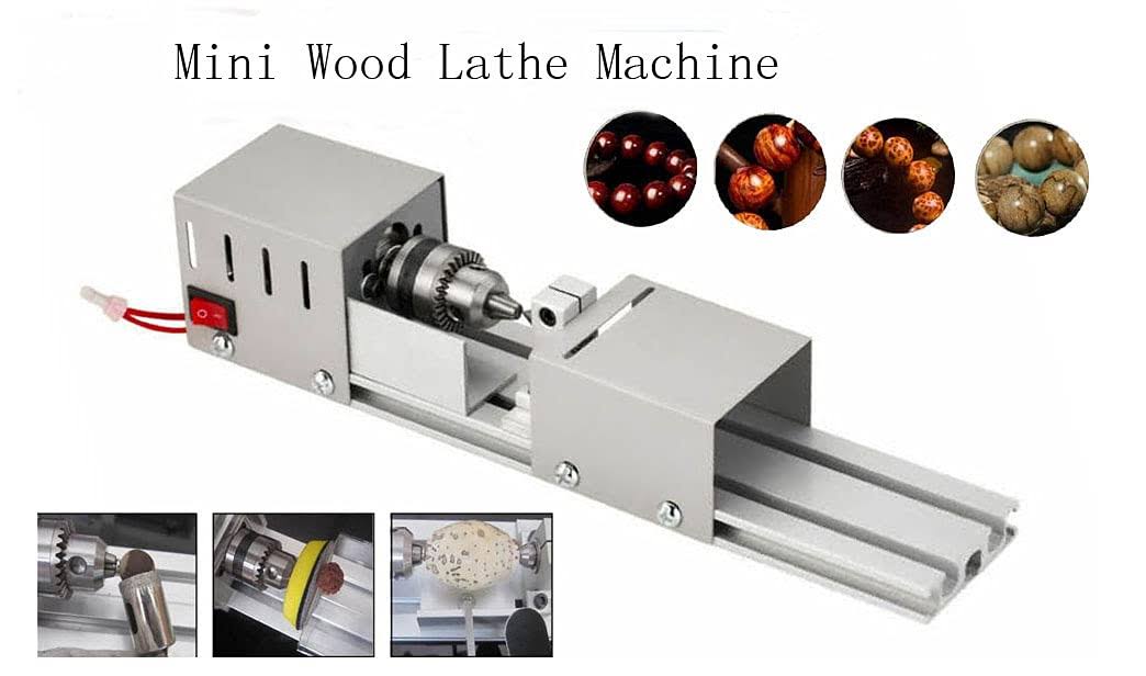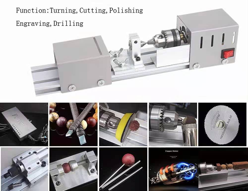 Jinegelela Professional Mini Lathe Machine, Lathe Tools Woodworking Machine, Lathe Beads Polisher, CNC DIY Woodworking Wood Lathe Machine (Silver)