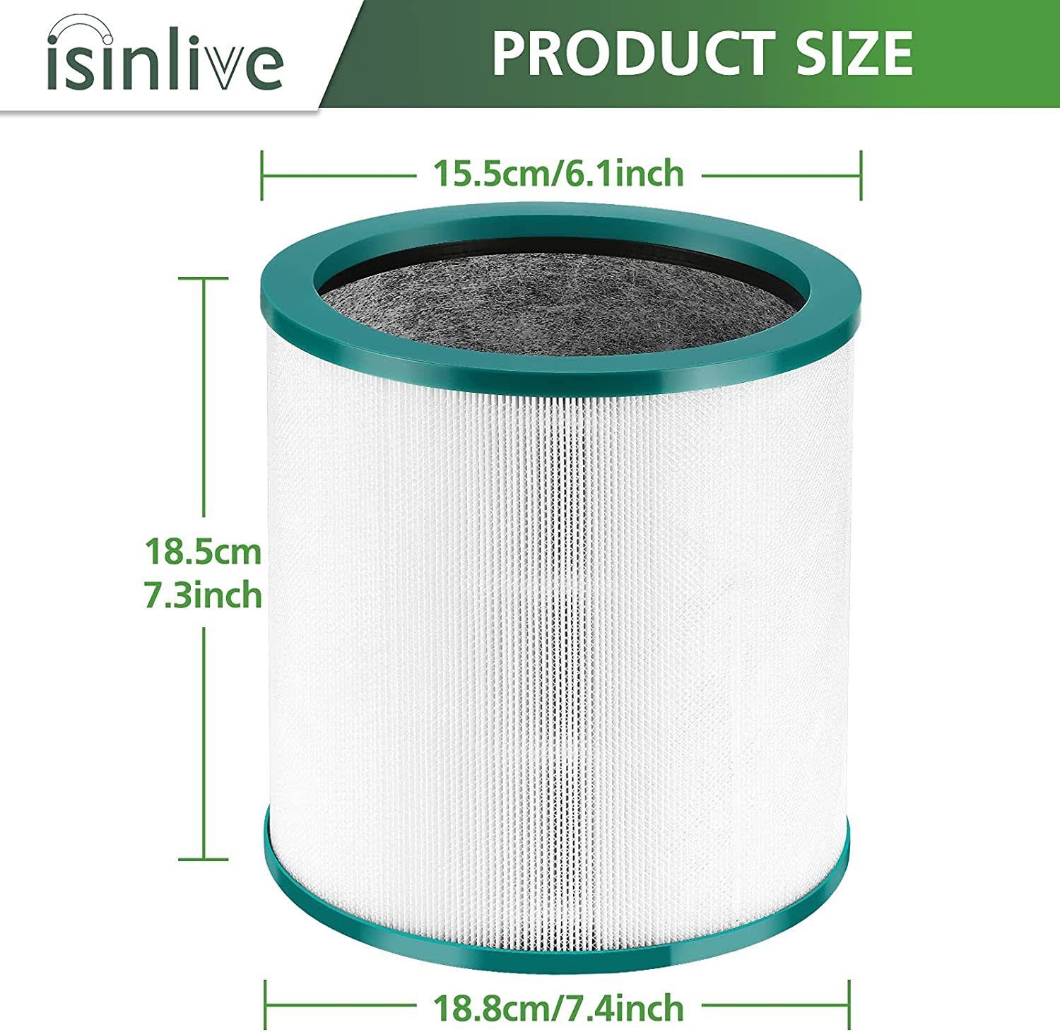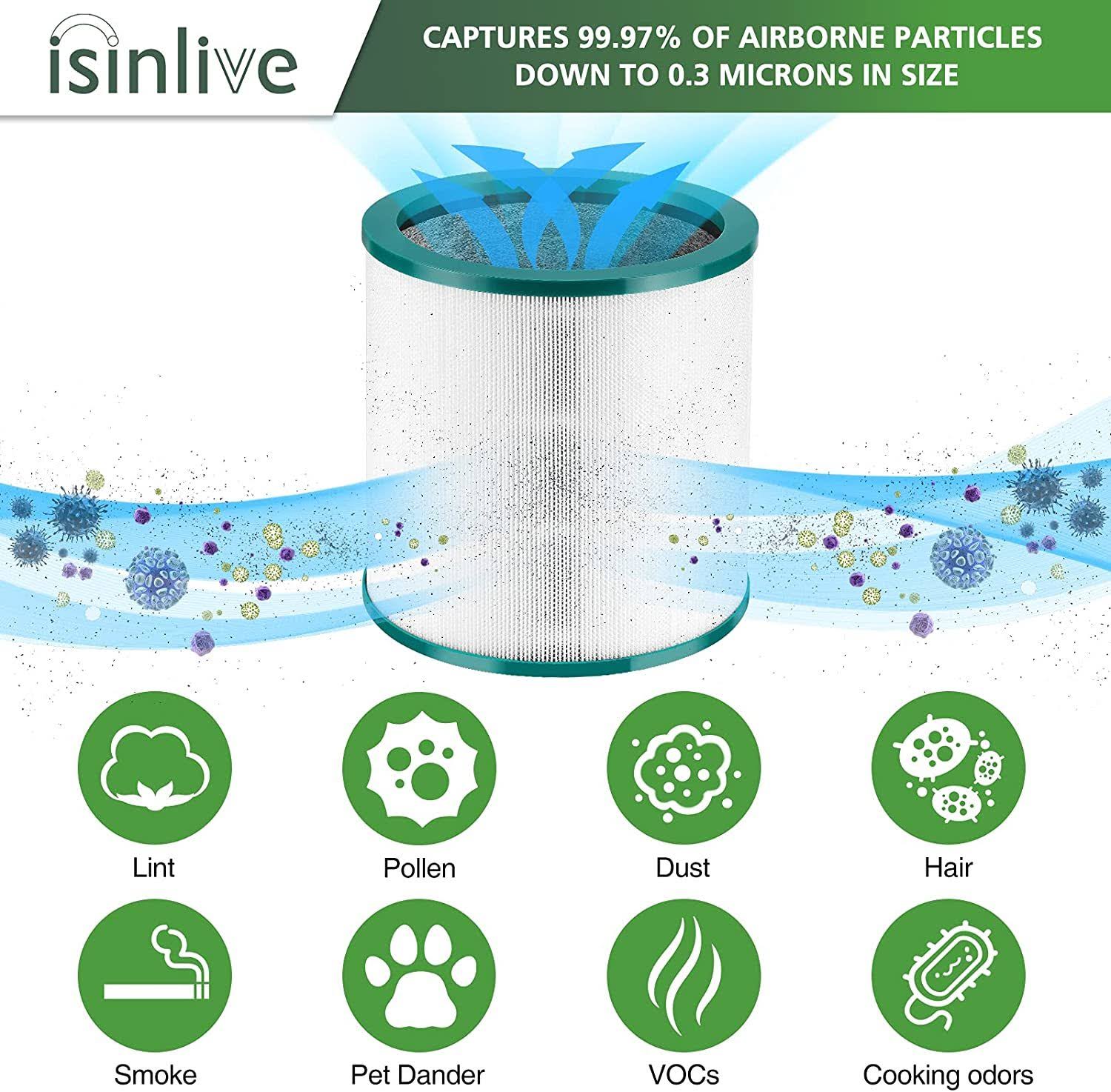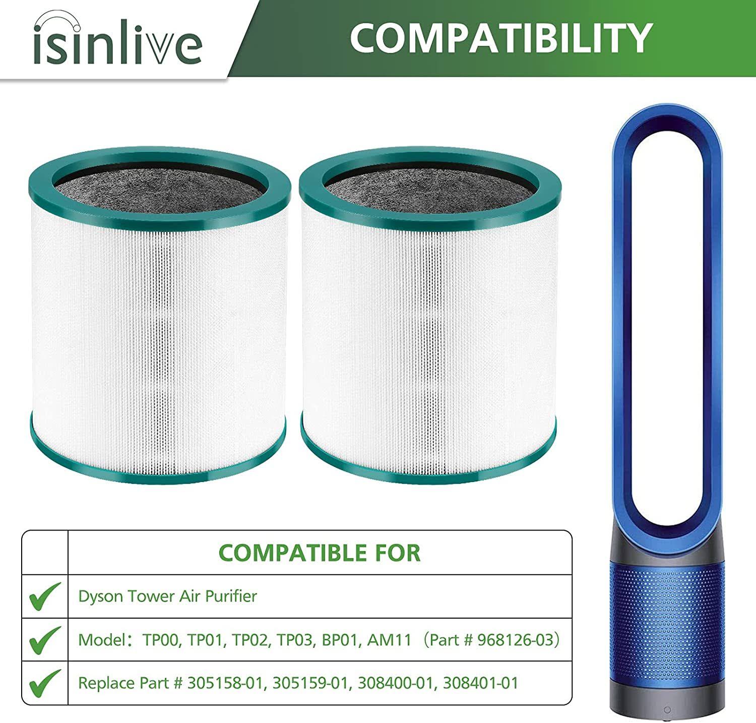 isinlive 2 Pack True HEPA Replacement Filter Compatible with Dyson Tower Purifier Pure Cool Link TP01, TP02, TP03, AM11, BP01 Models, Compare to Part