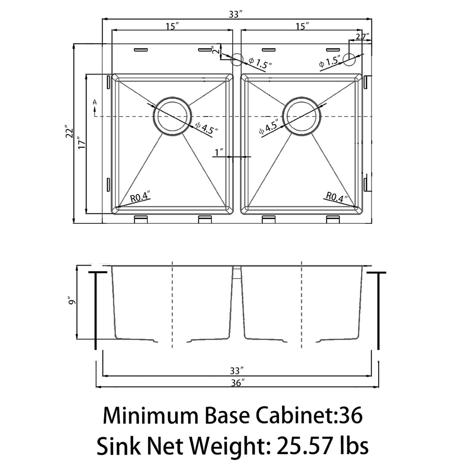 Sinber 33 in. Drop-In Double Bowl 18-Gauge 304 Stainless Steel Workstation Kitchen Sink, Silver OSC