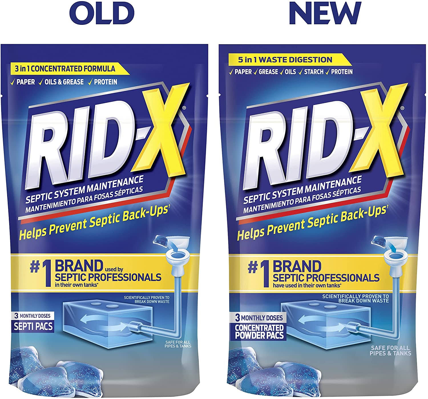 Rid-X Septic System Maintenance, 5 in 1 Waste Digestion, Concentrated Powder Pacs- 3.2 oz