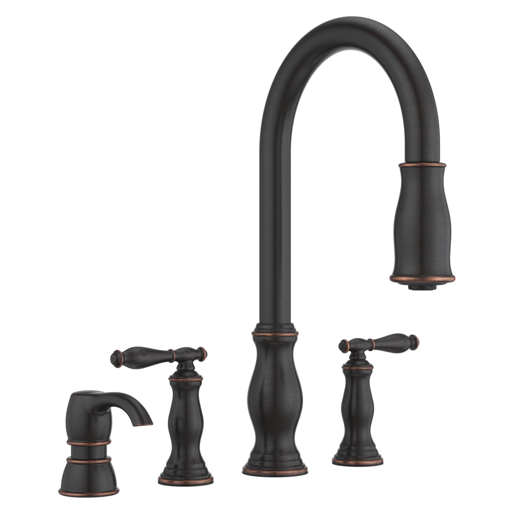 Pfister F-531-4HNY Hanover 2-Handle Pull-Down Kitchen Faucet with Soap Dispenser Tuscan Bronze
