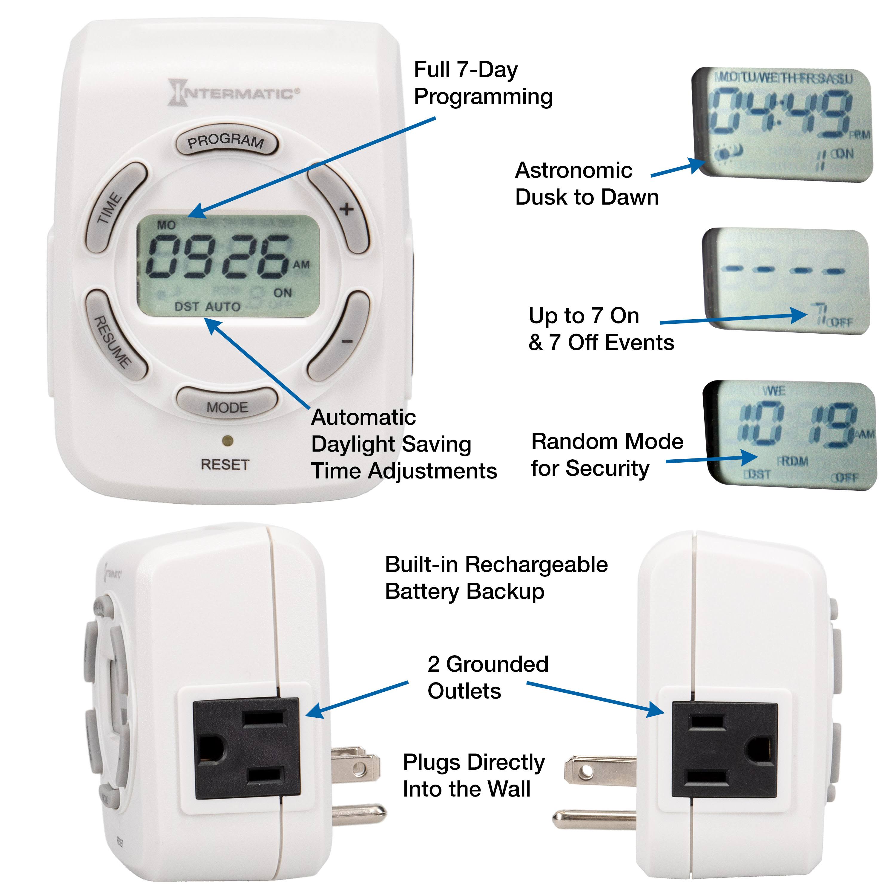 Intermatic DT122K 15 Amp Two-Outlet Heavy Duty Digital Indoor Timer
