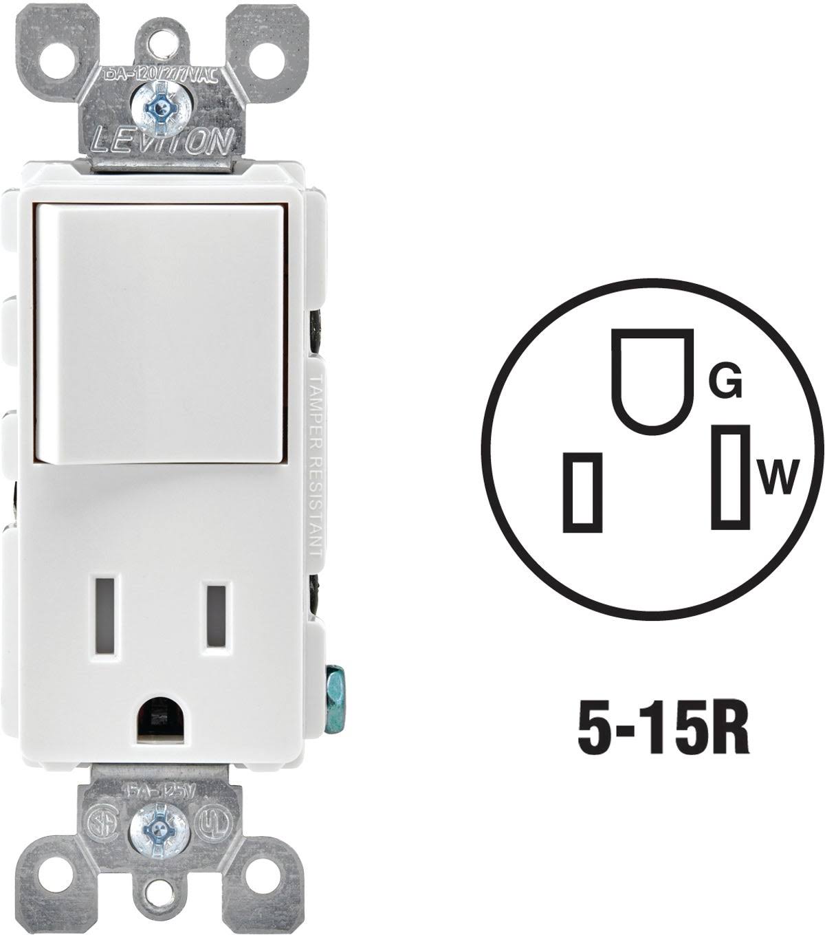 Leviton Combination Decora Switch & Receptacle/Outlet 15A White