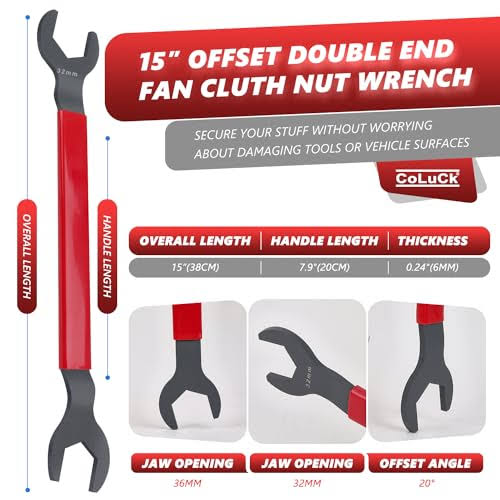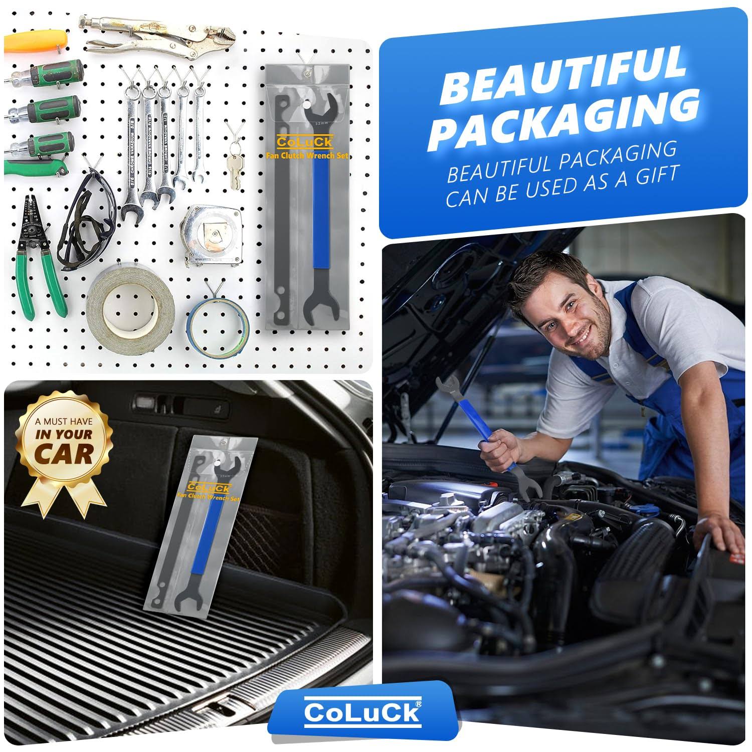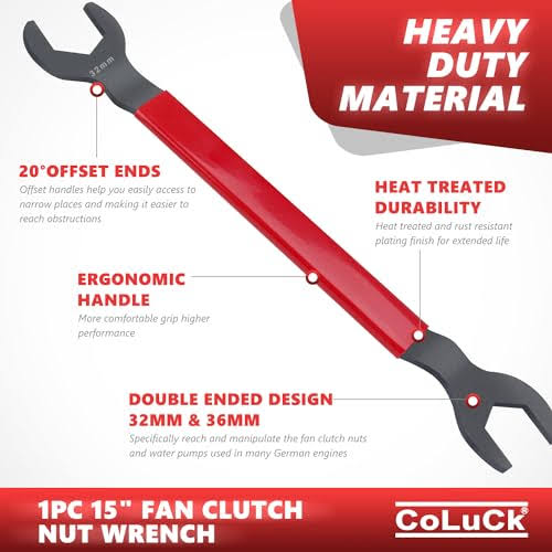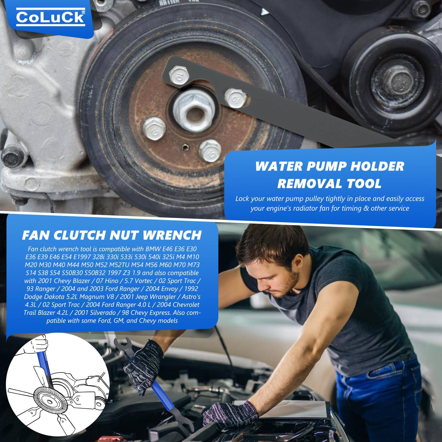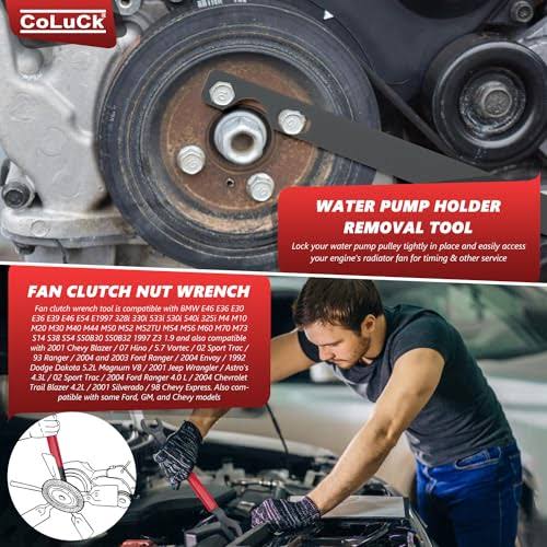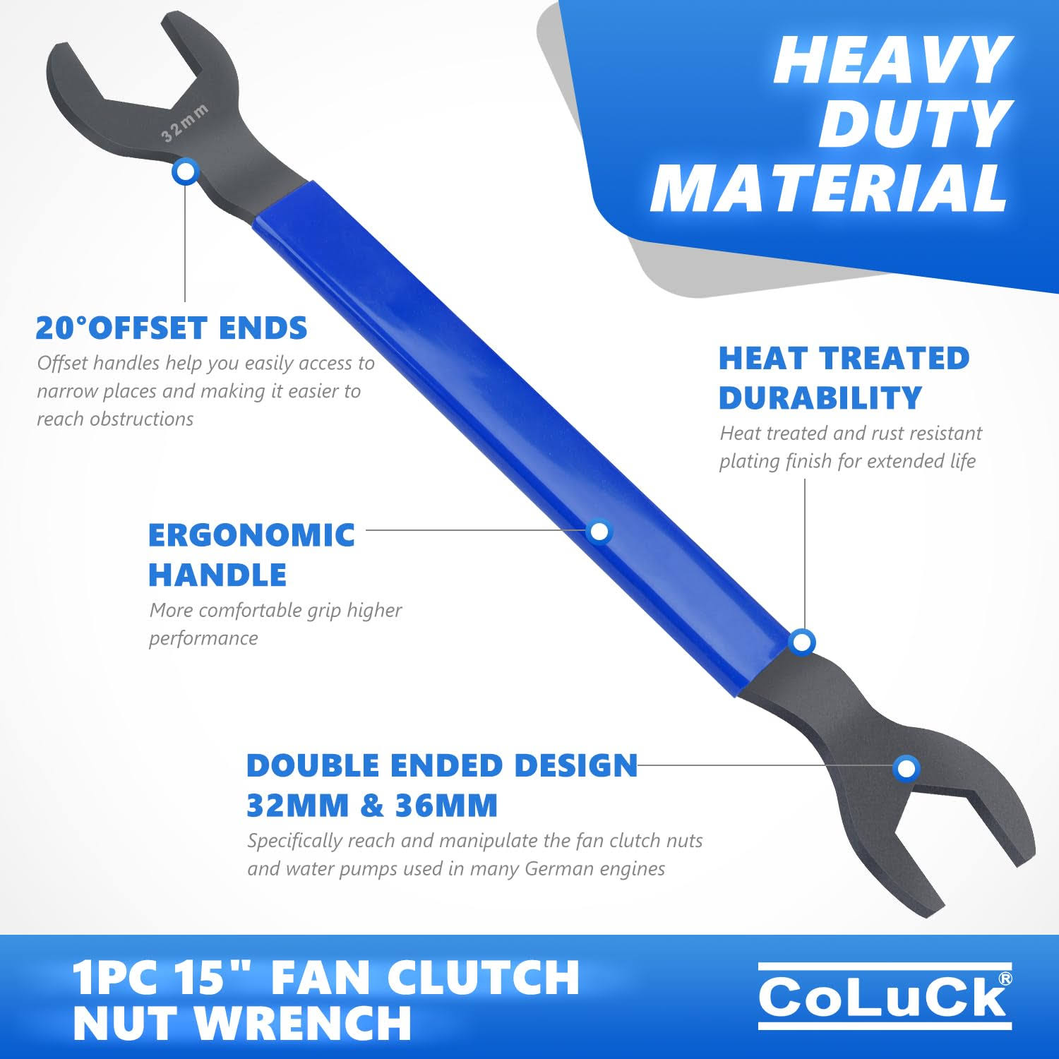 CoLuck Fan Clutch Wrench Set- 32mm & 36mm Wrenches- Fan Clutch Removal Tool Compatible with BMW, GM, Chevrolet, Fan Clutch Tool, Water Pump Holder