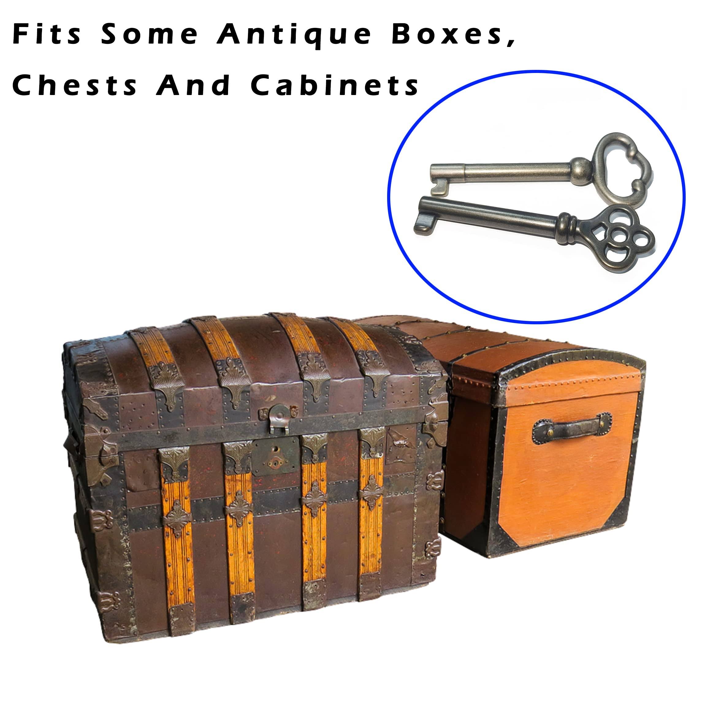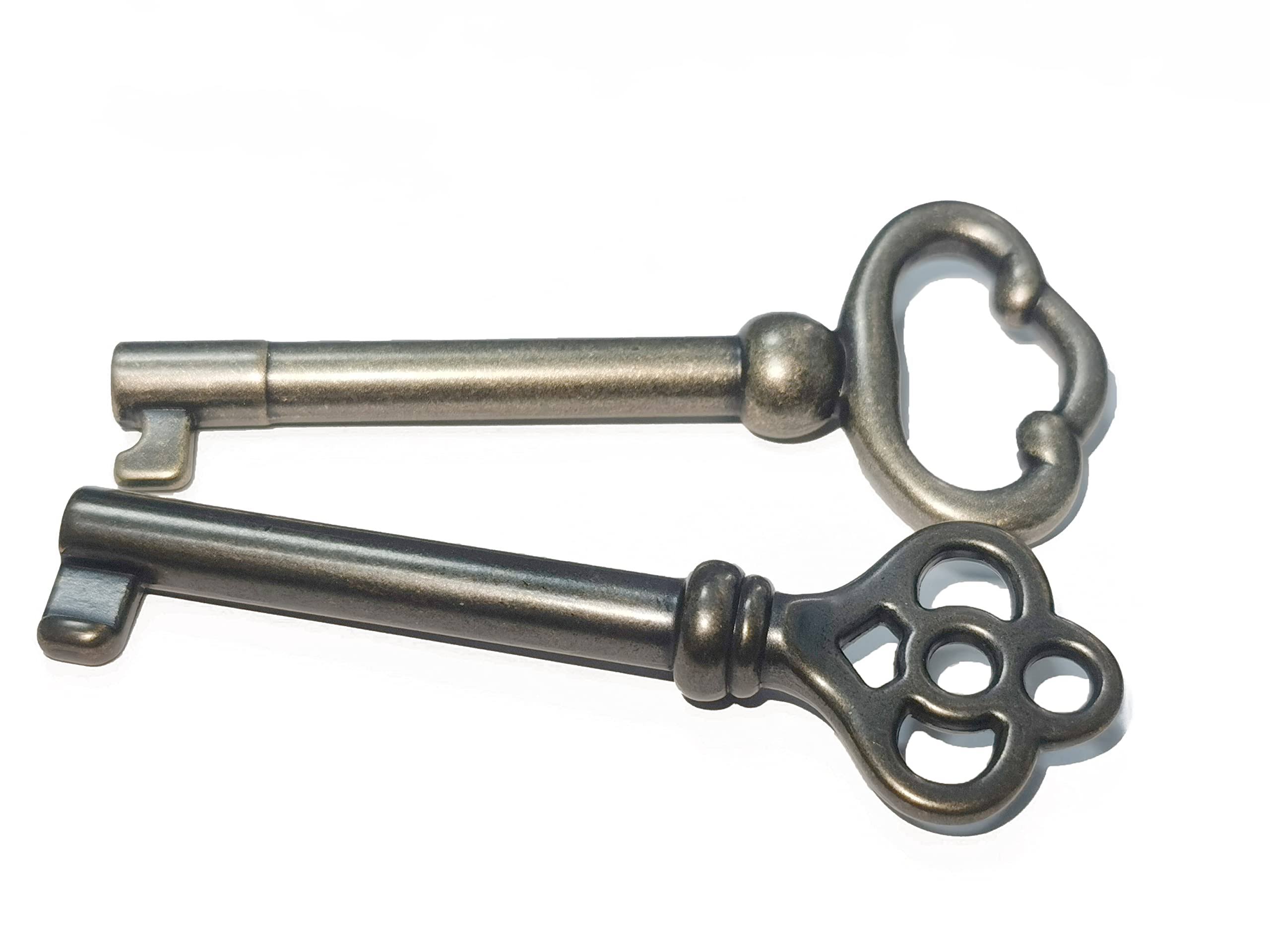 Generic Skeleton Key KY-2AB and KY-3AB Antique Brass Plated Hollow Barrel Old Keys for Cabinets, Doors, Cabinets Etc