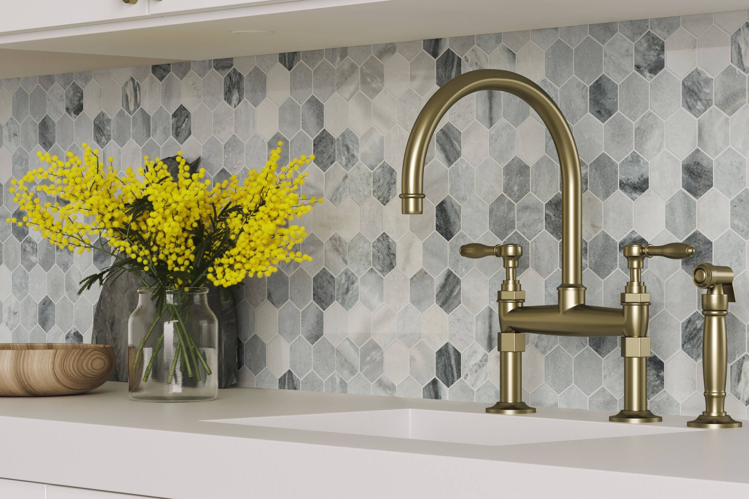 Satori Storm Gray 12-in x 12-in Polished Natural Stone Marble Hexagon Marble Look Floor and Wall Tile (0.96-sq. ft/ Piece)