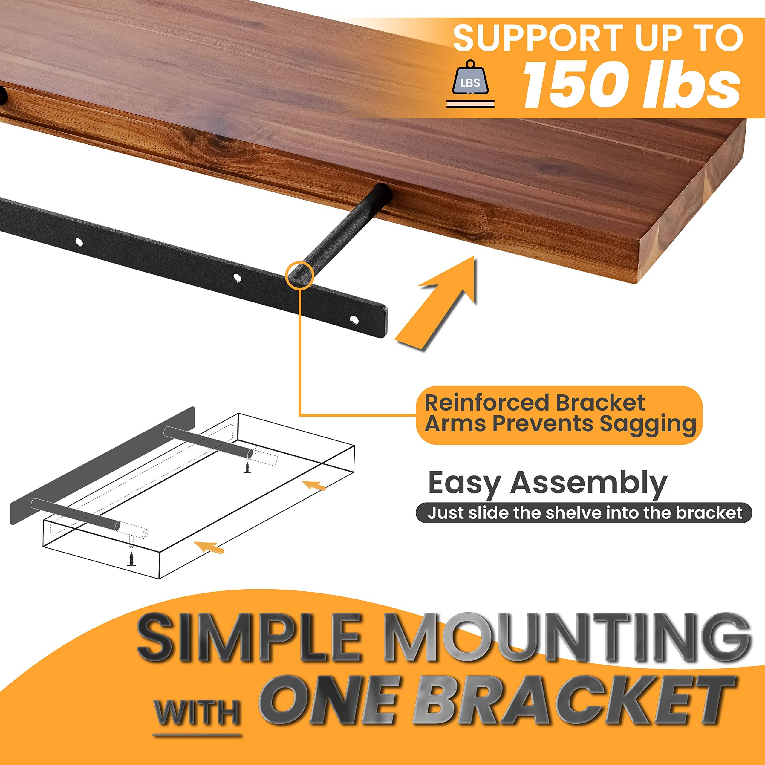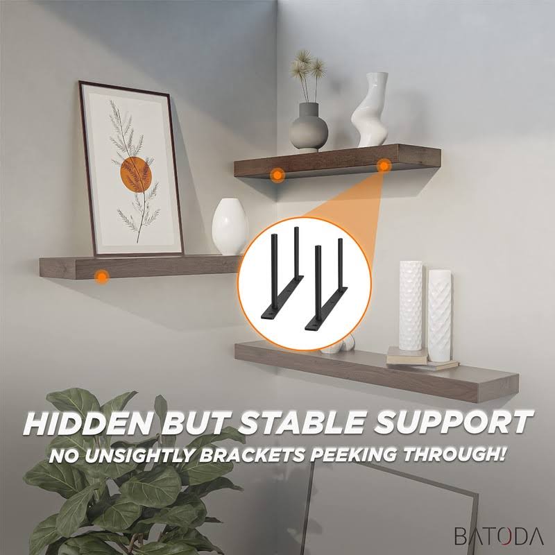 BATODA 24" Heavy Duty Floating Shelf Bracket (2 Pcs)- Solid Steel Blind Shelf Supports- Hidden Brackets for Floating Wood Shel btd14-1