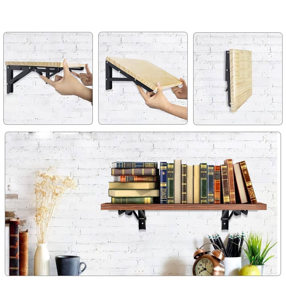 Hniuyun 2pcs Folding Shelf Brackets, Heavy Duty Stainless Steel Shelf Bracket for Table Work Space Saving DIY Bracket, Load Capacity:110lb (12inch)