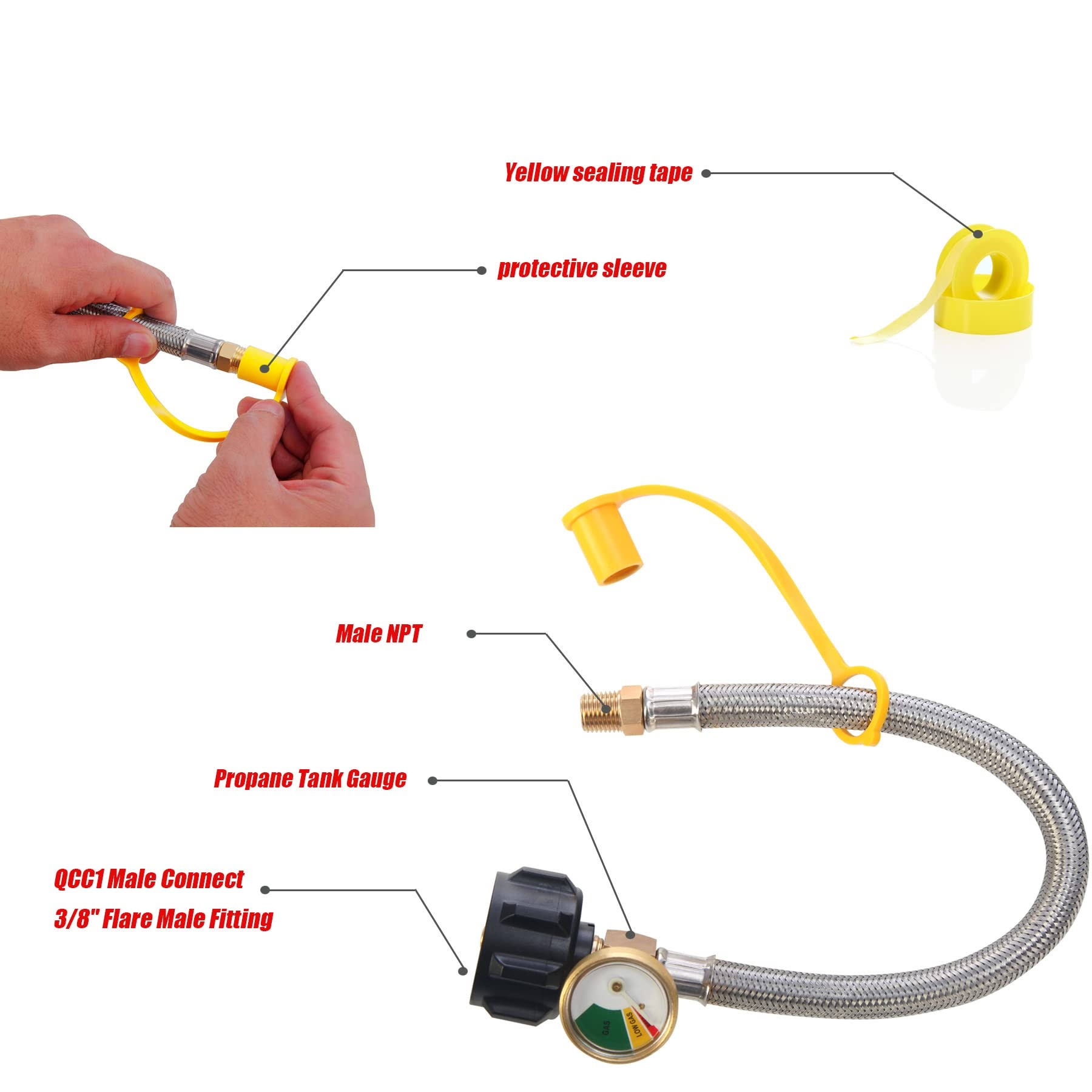 LONGADS 2 Packs 15 inch RV Propane Hoses with Gauge, Stainless Steel Braided Camper Tank Hose, LP GAS Hoses Connector for Standard Two-Stage