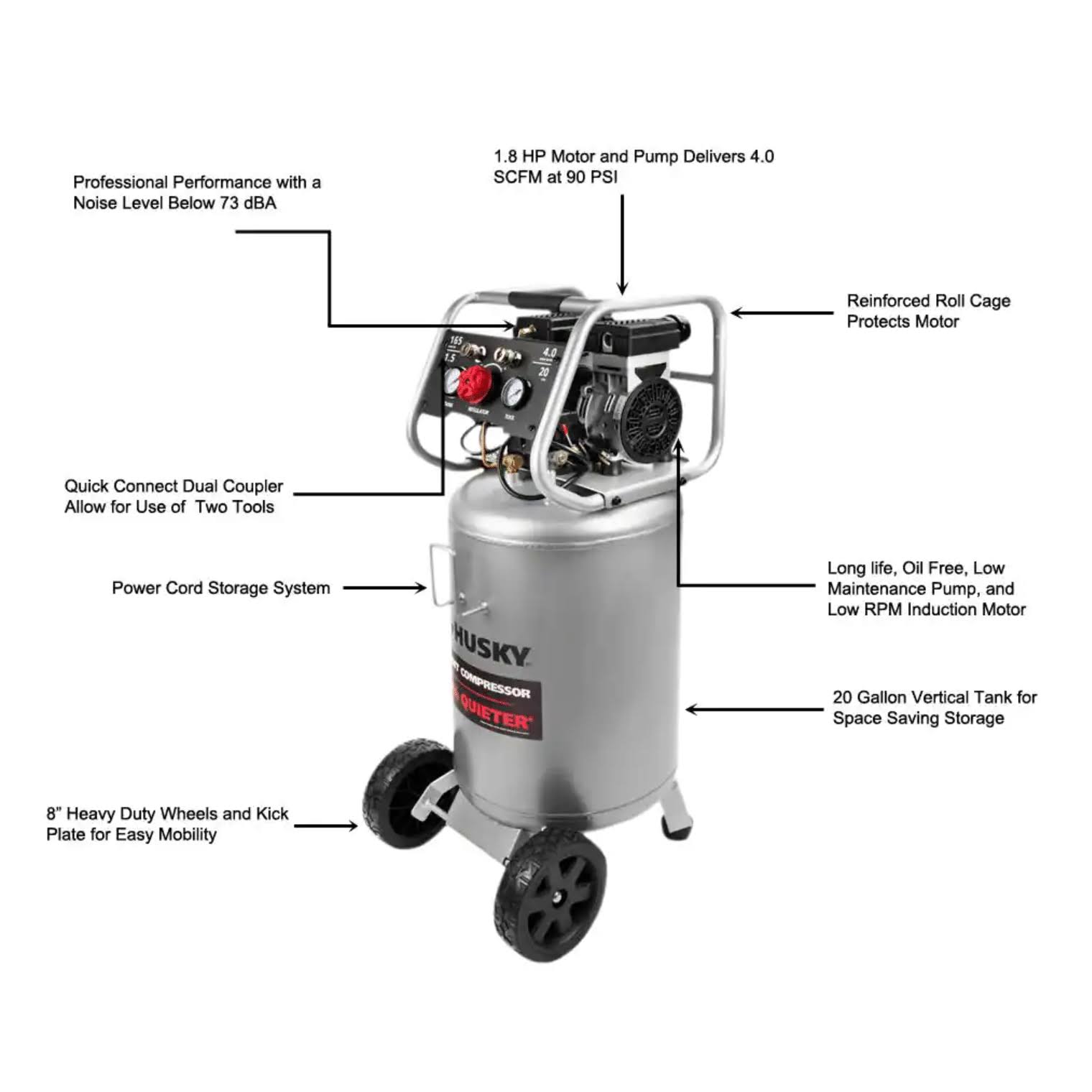 Husky 3332013 20 gal. Vertical Electric-Powered Silent Air Compressor