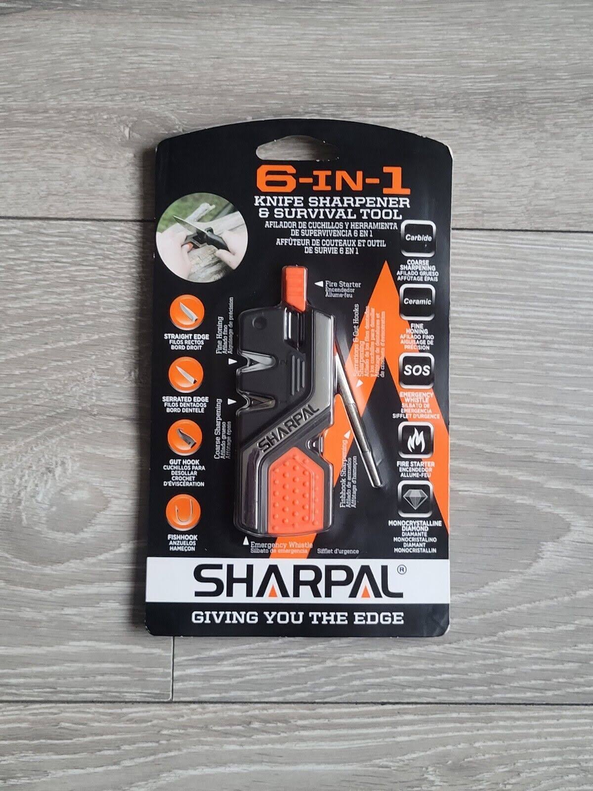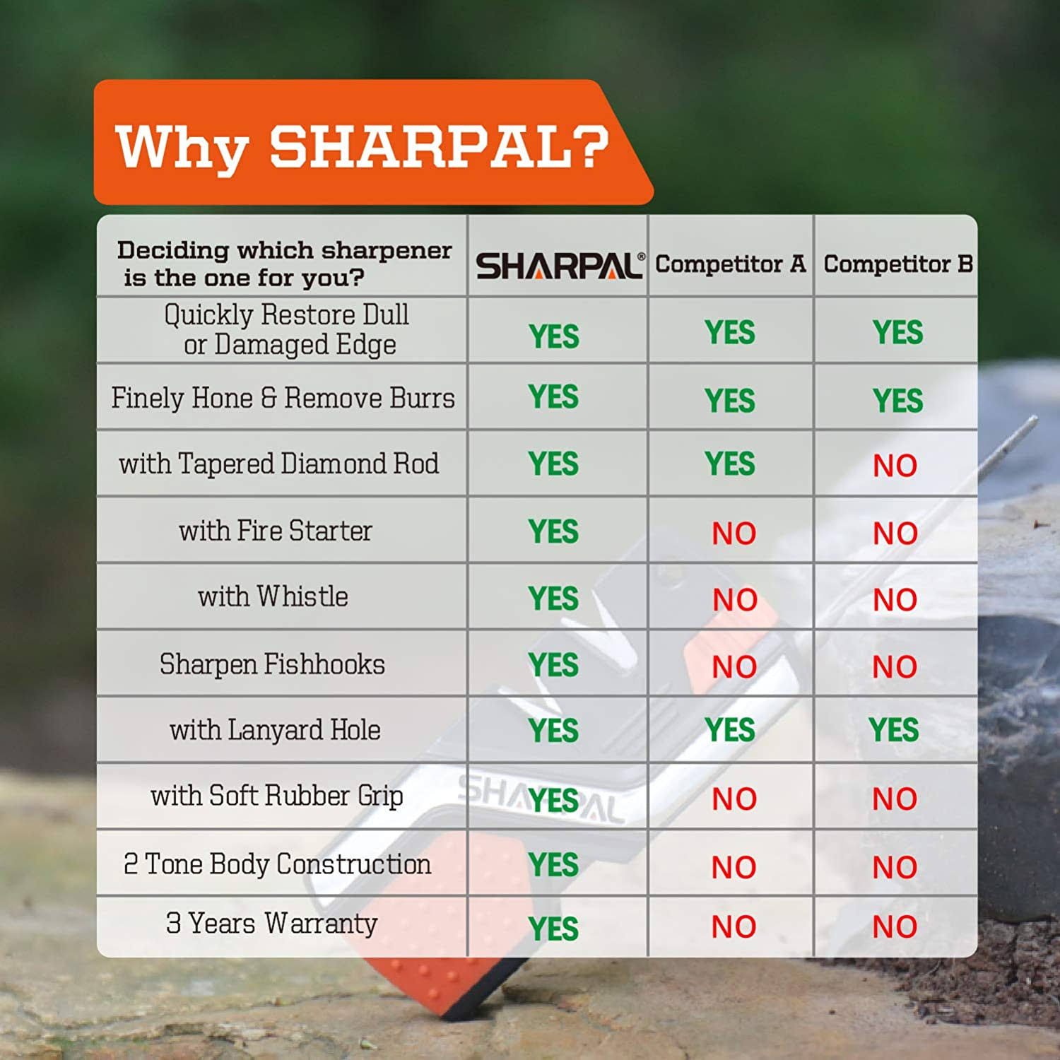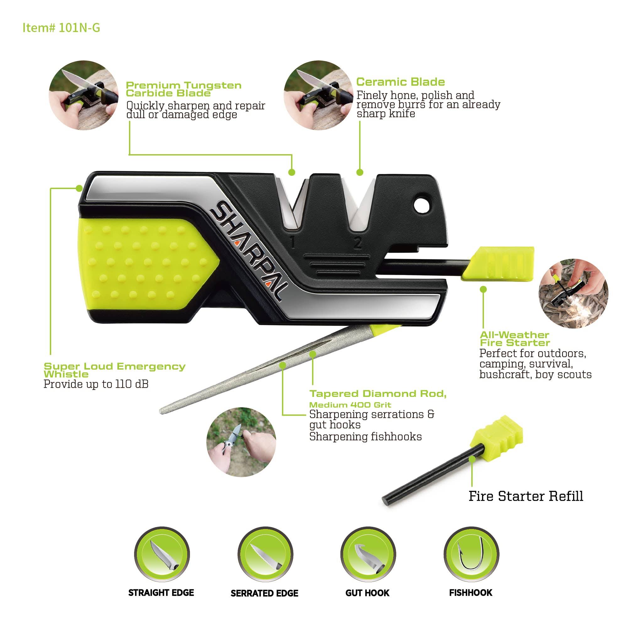 Sharpal 101n-g Kitchen Knife Sharpener Tool with 2 Fire Starter, Whistle & Diamond Sharpening Rod for Straight and Serrated Blade