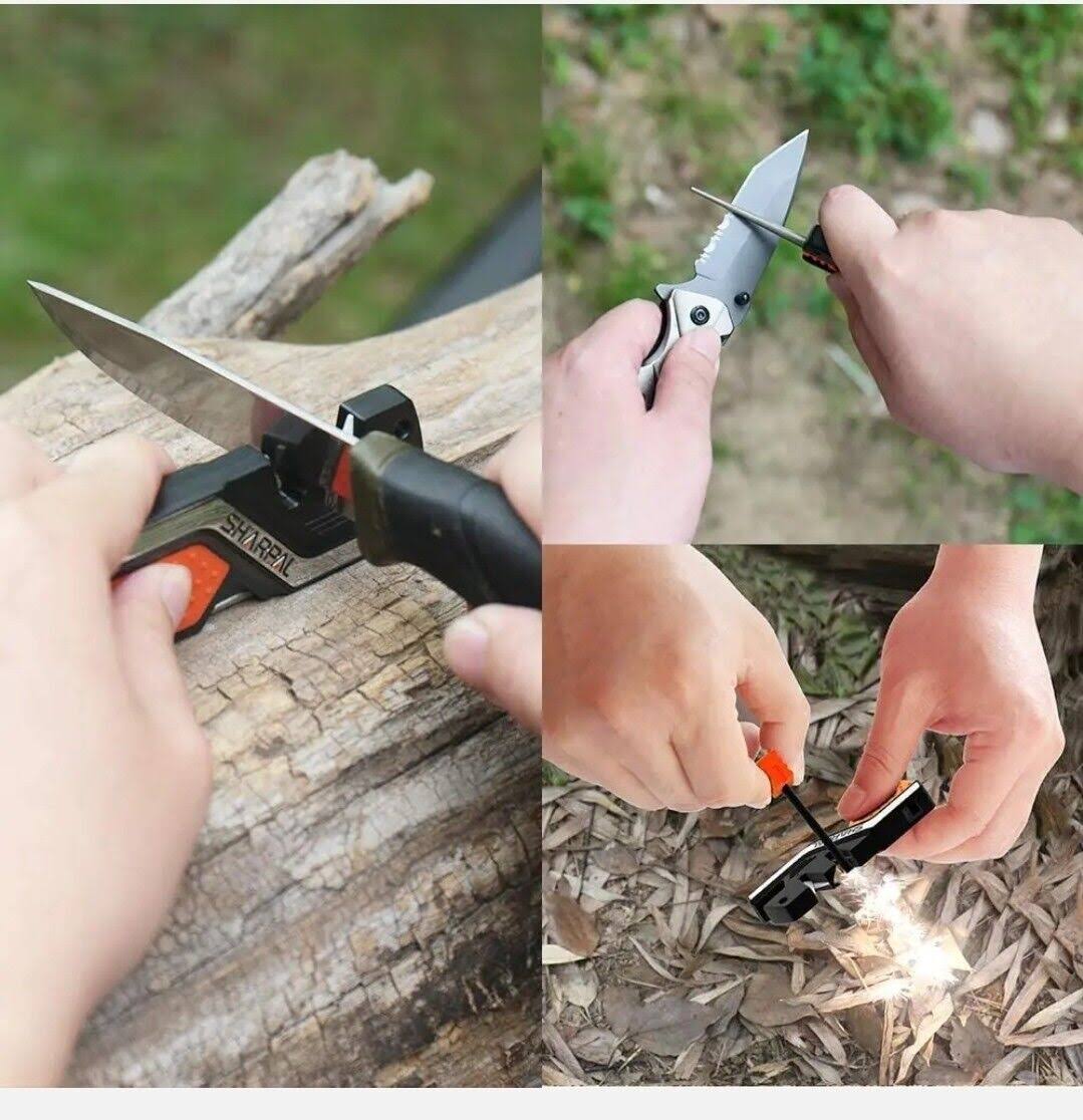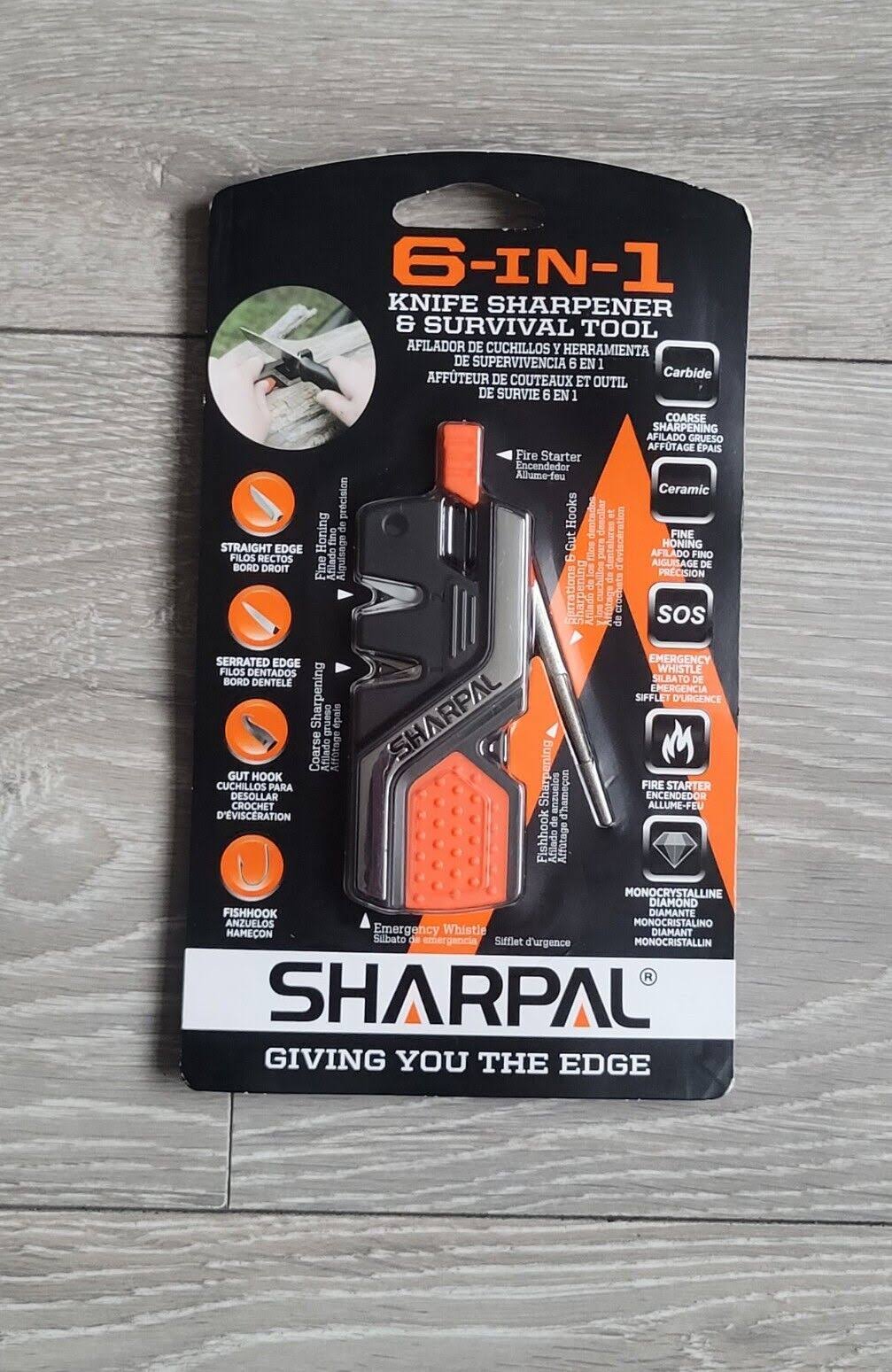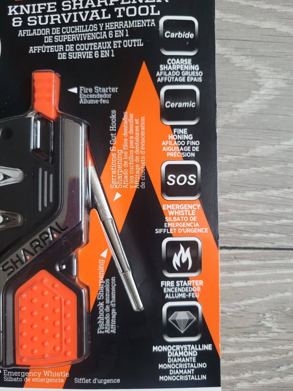Sharpal 101n-g Kitchen Knife Sharpener Tool with 2 Fire Starter, Whistle & Diamond Sharpening Rod for Straight and Serrated Blade