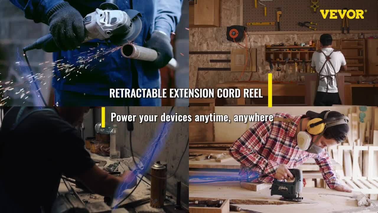 VEVOR Retractable Extension Reel Heavy Duty 12AWG/3C Sjtow Power Cord 45 ft 12AWG Black