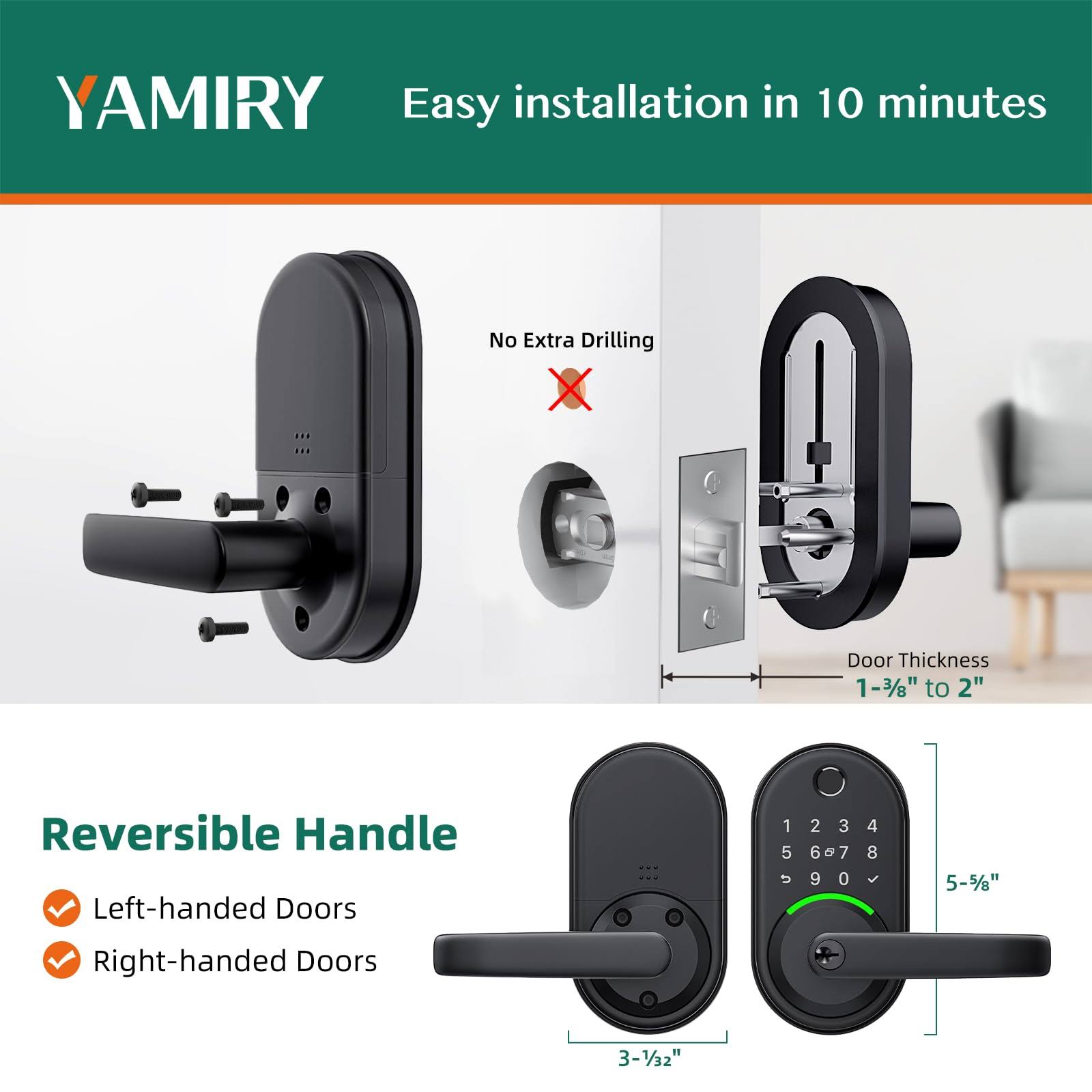 Smart Door Handle Lock with Keypad:Yamiry Fingerprint Lock- Keyless Entry Door Lock for Front Door- Digital Door Lock- WiFi Door Lock with App-