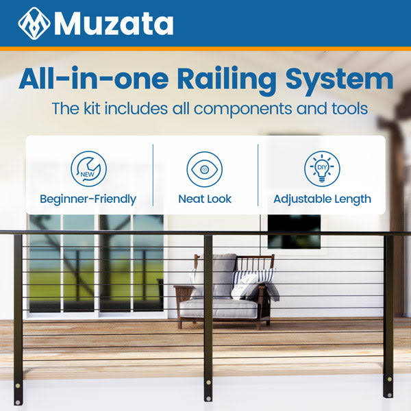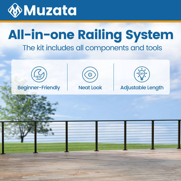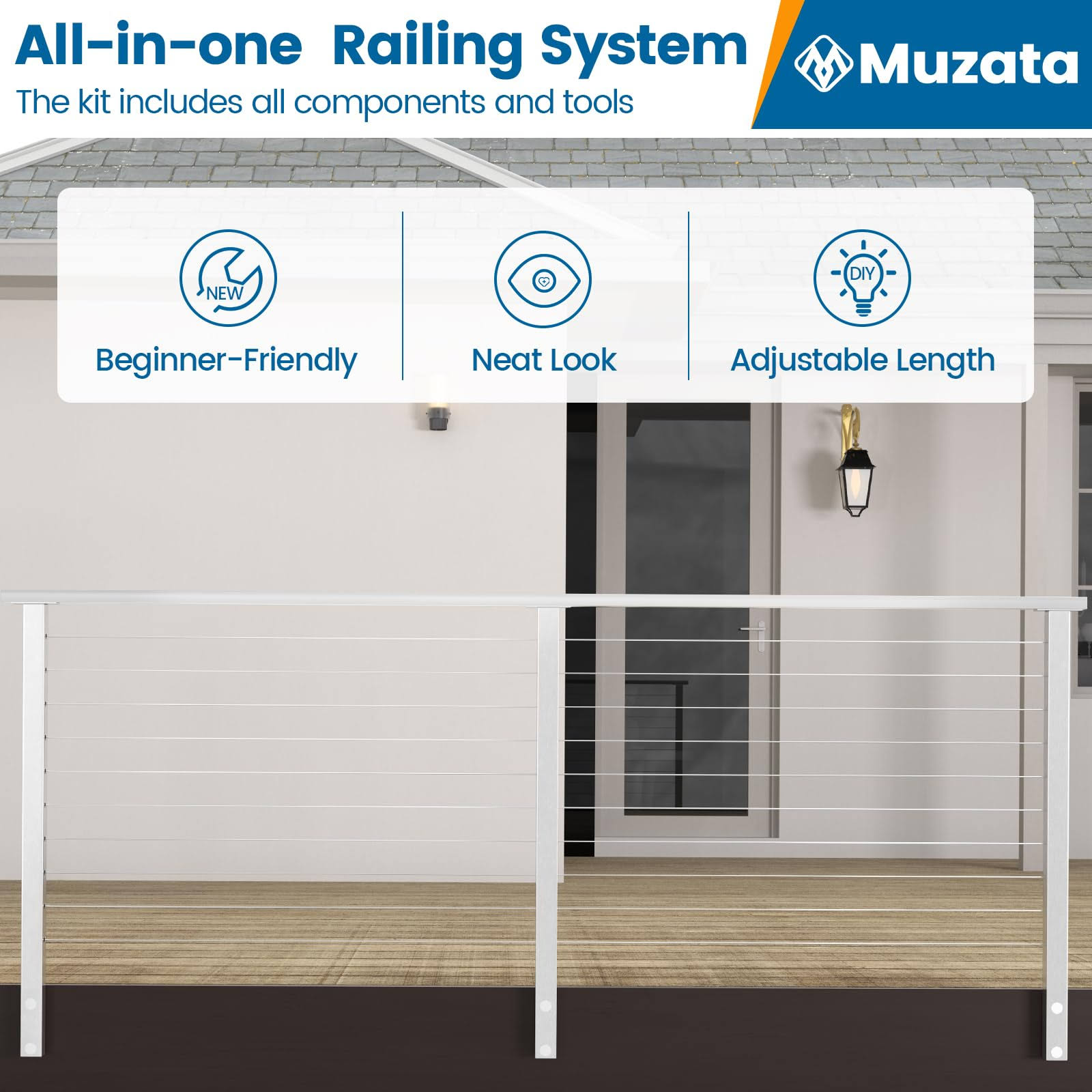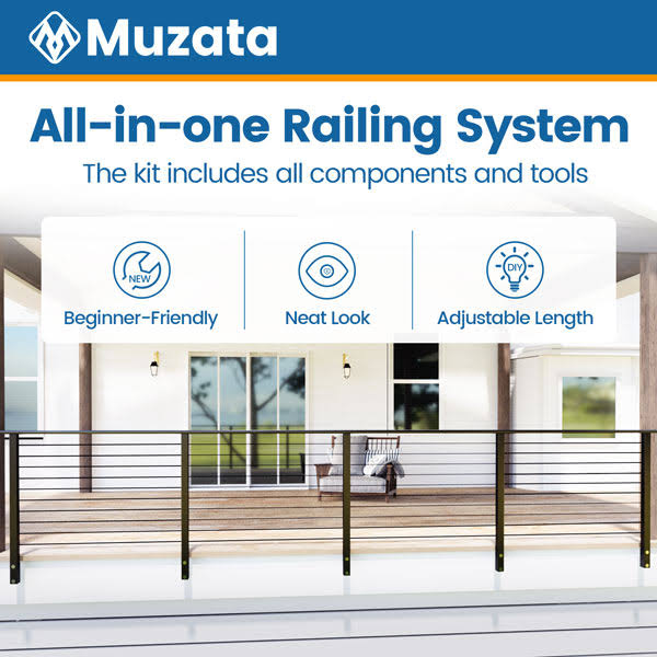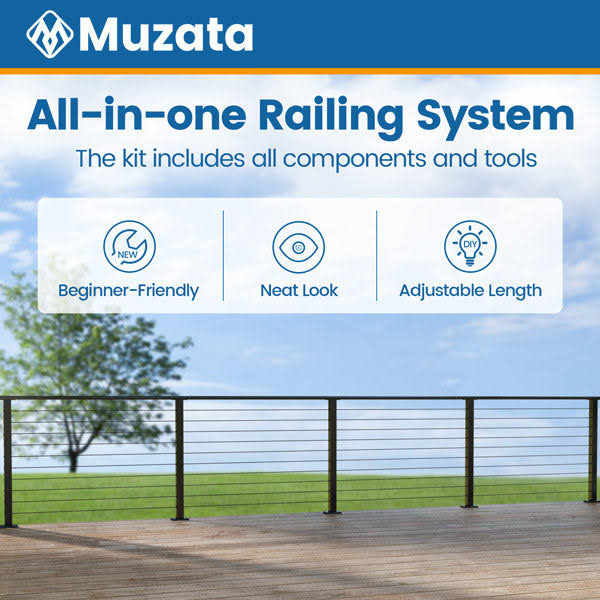 Muzata 19.5ft / Black- Surface Mount Complete Set Cable Railing System, One Stop Service All-in-One DIY Kit Fit