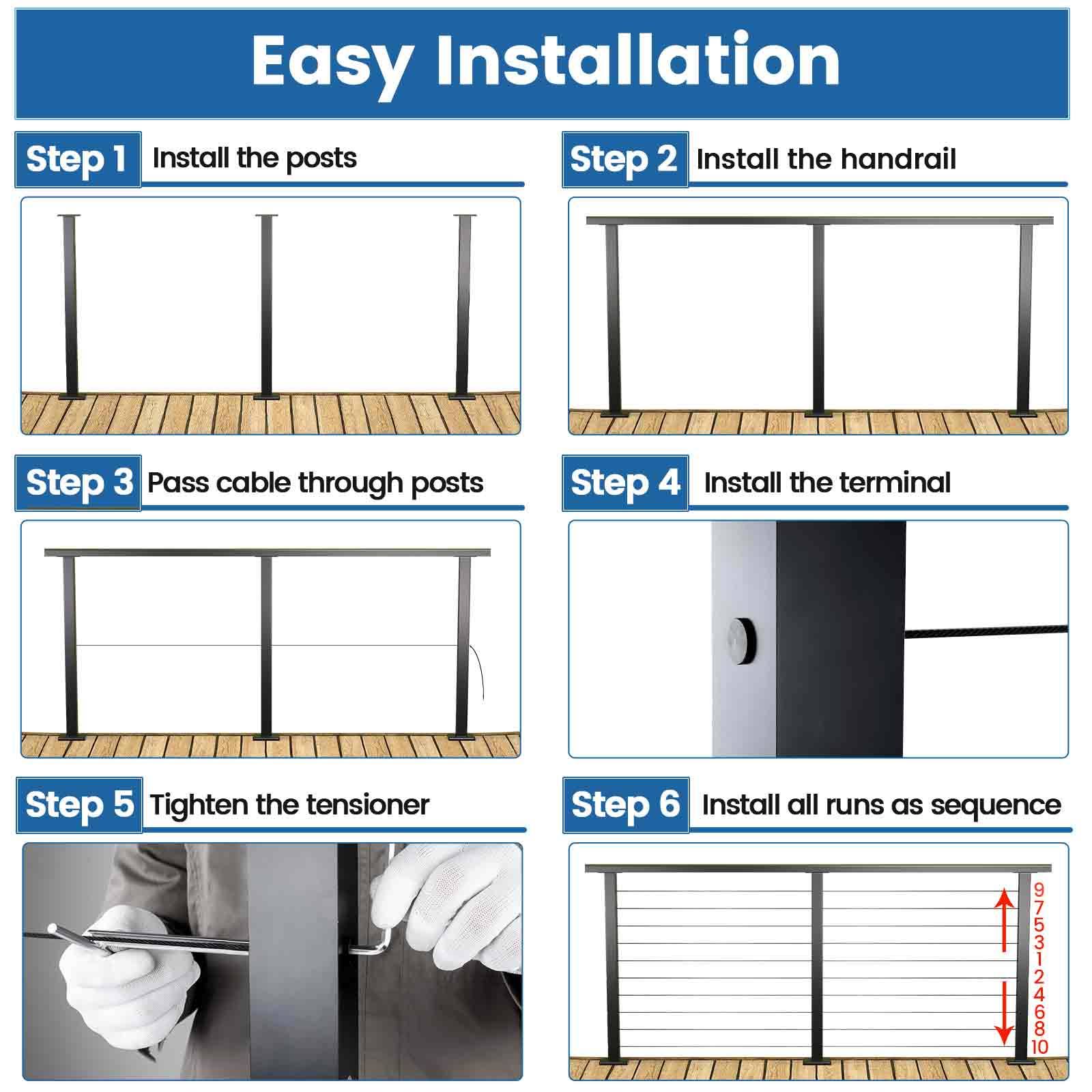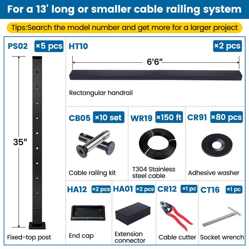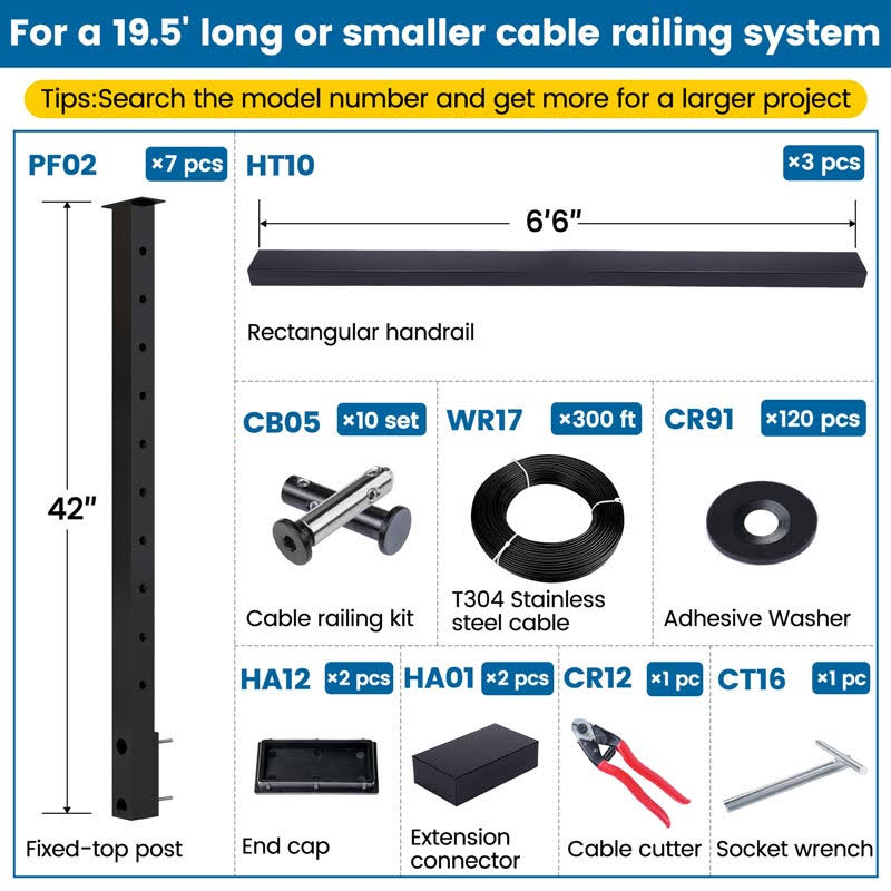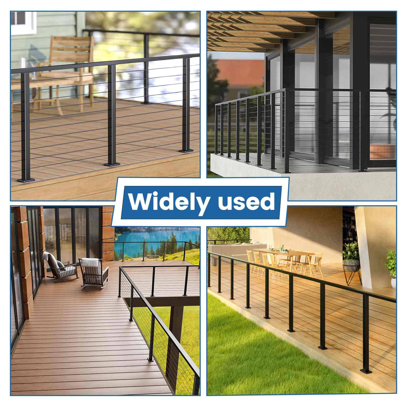 Muzata 19.5ft / Black- Surface Mount Complete Set Cable Railing System, One Stop Service All-in-One DIY Kit Fit