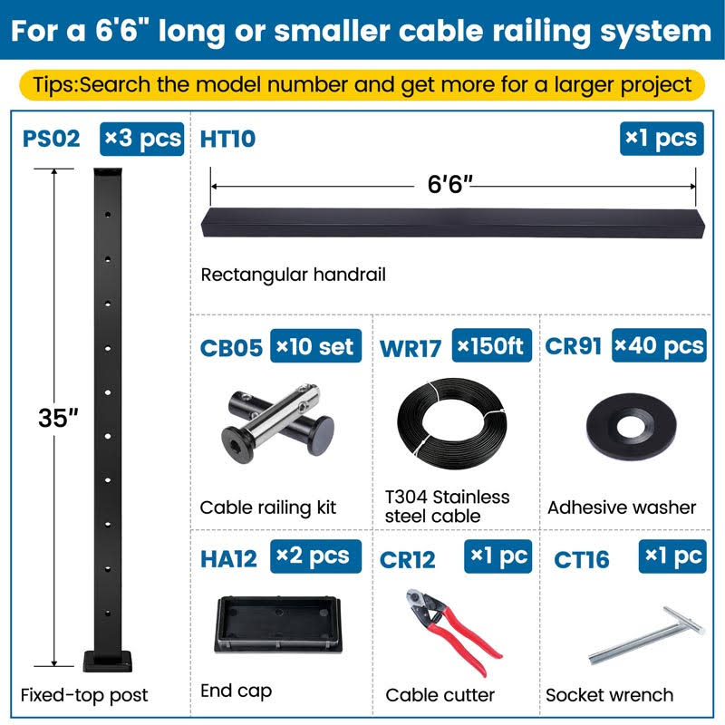 Muzata 6.5ft / Black- Surface Mount Complete Set Cable Railing System, One Stop Service All-in-One DIY Kit Fit