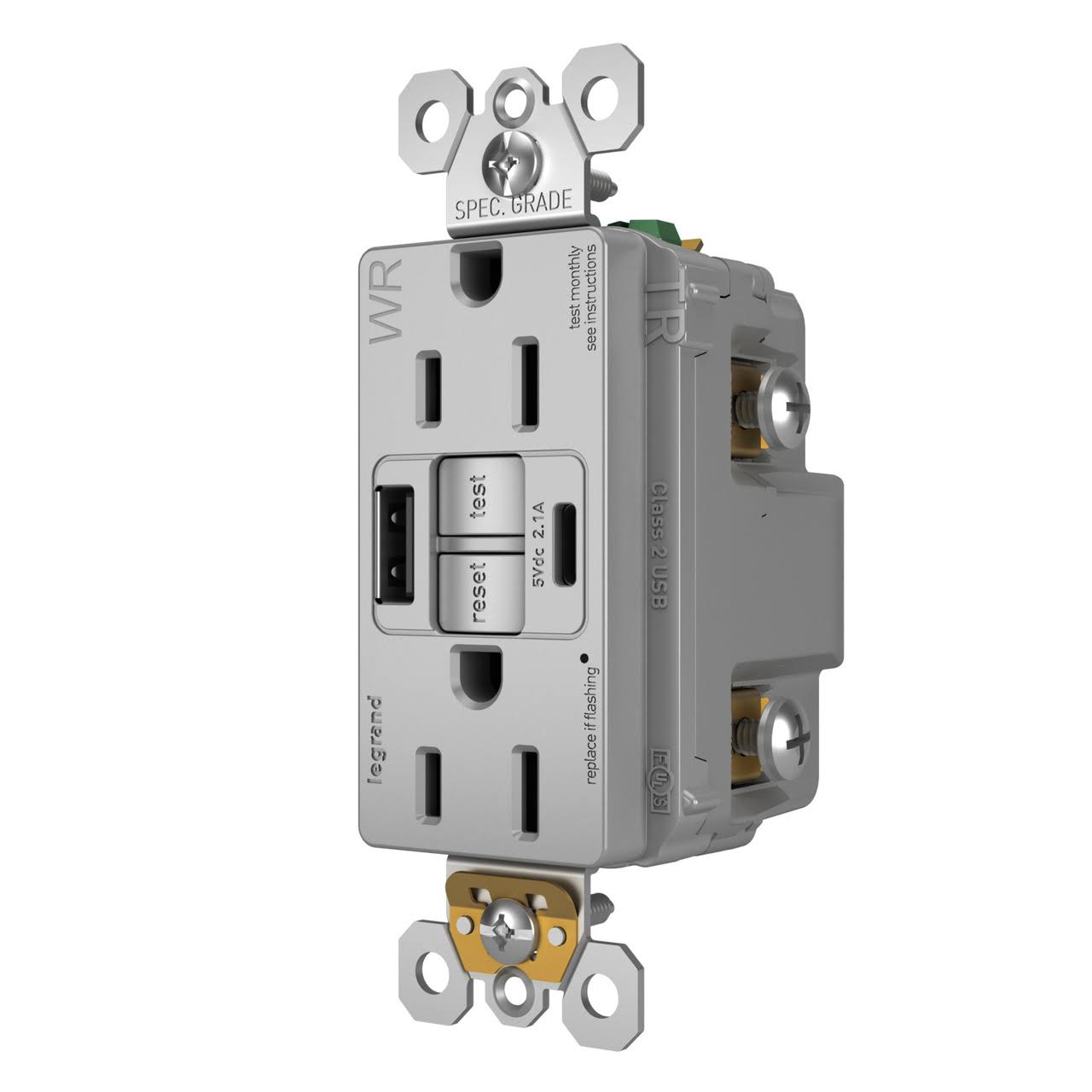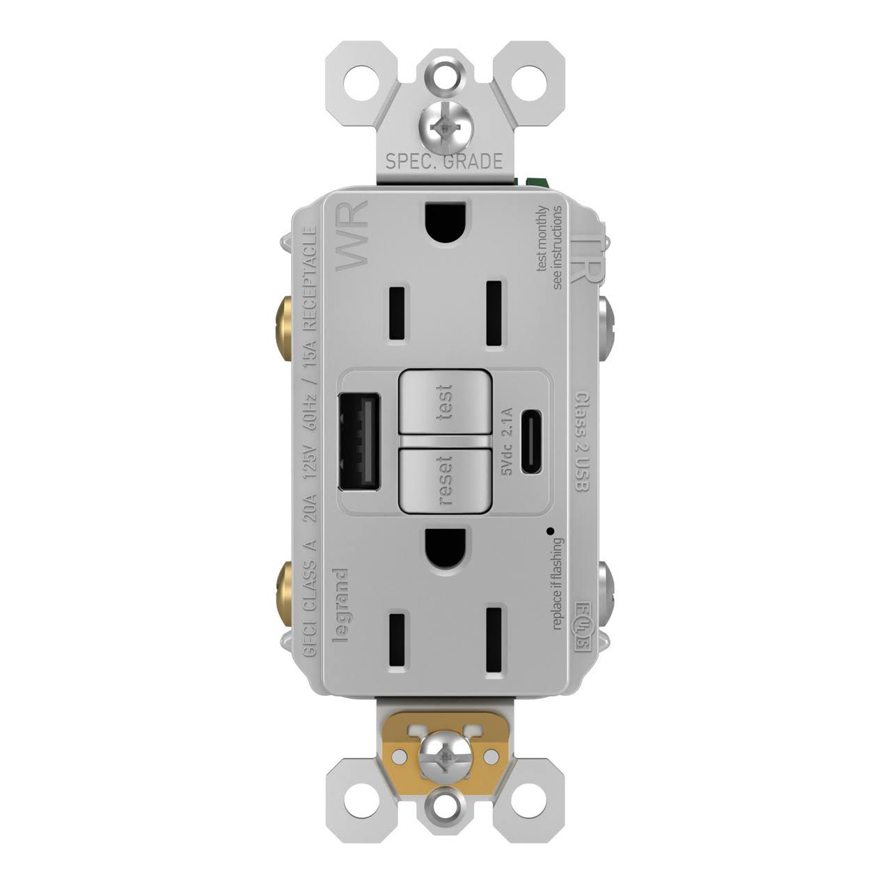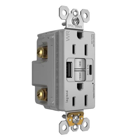 Pass and Seymour Self-Test GFCI Receptacle Tamper-Resistant Weather-Resistant 15A with USB Type AC Gray (1597TRWRUSBACGRY)