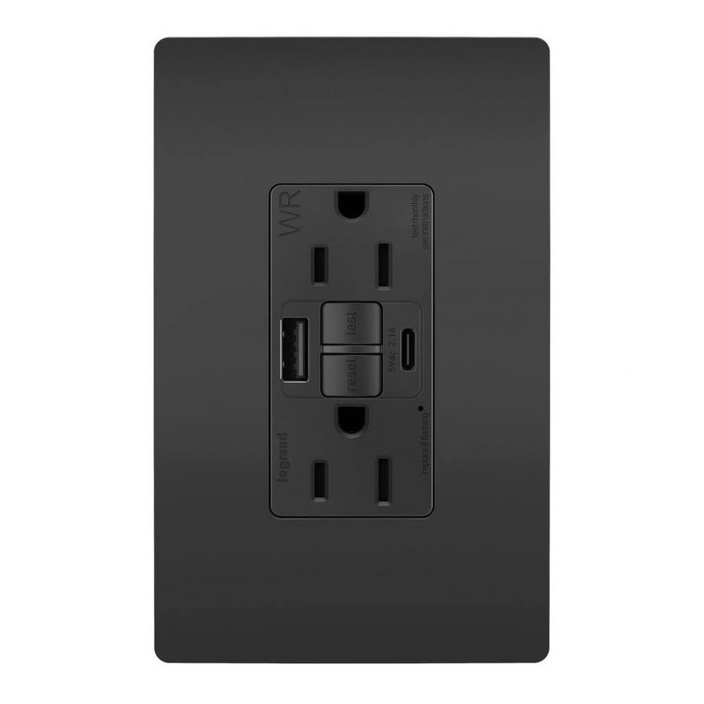 Pass and Seymour Self-Test GFCI Receptacle Tamper-Resistant Weather-Resistant 15A with USB Type AC Black (1597TRWRUSBACBK)