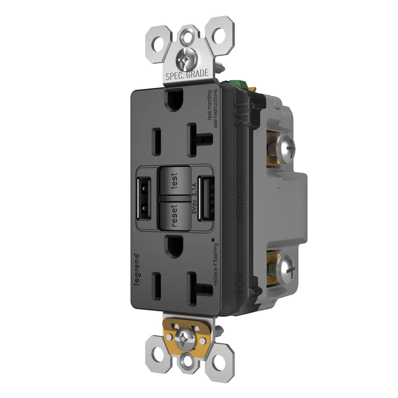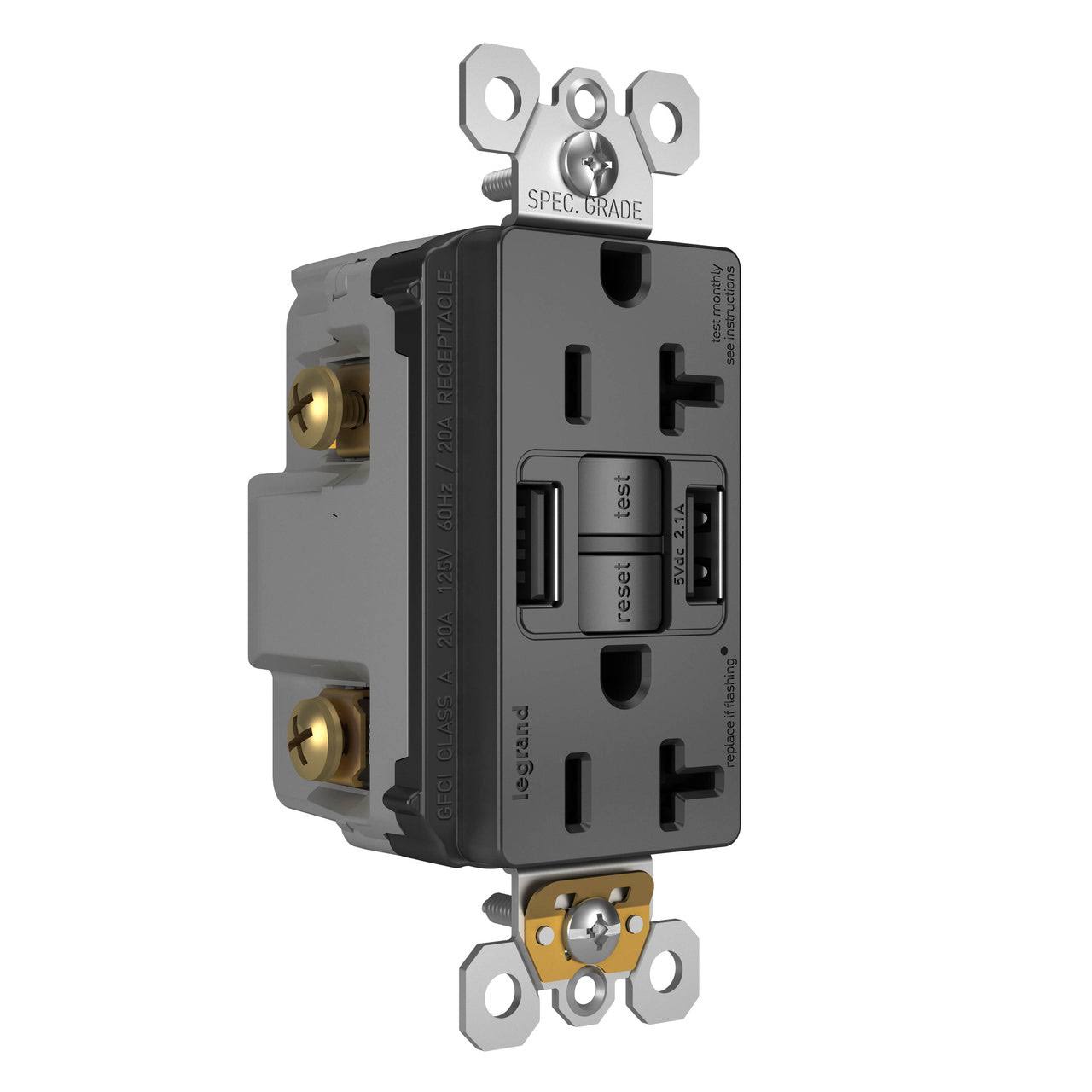 Pass and Seymour Self-Test GFCI Outlet Tamper-Resistant 20A with USB Type AA Black (2097TRUSBAABK)