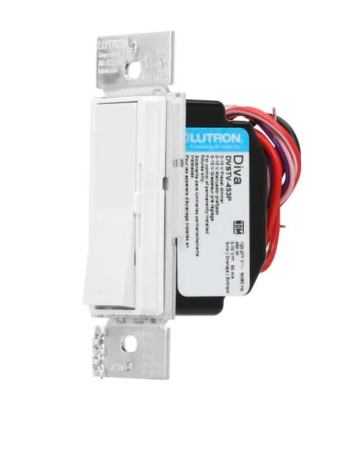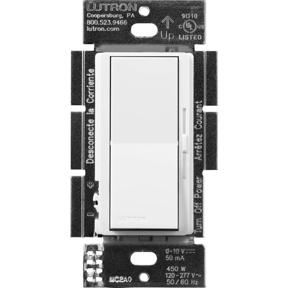 Lutron Diva Dimmer for 0-10V LED/Fluorescent Fixtures, Single-Pole or 3-Way, White DVSTV-453PH-WH