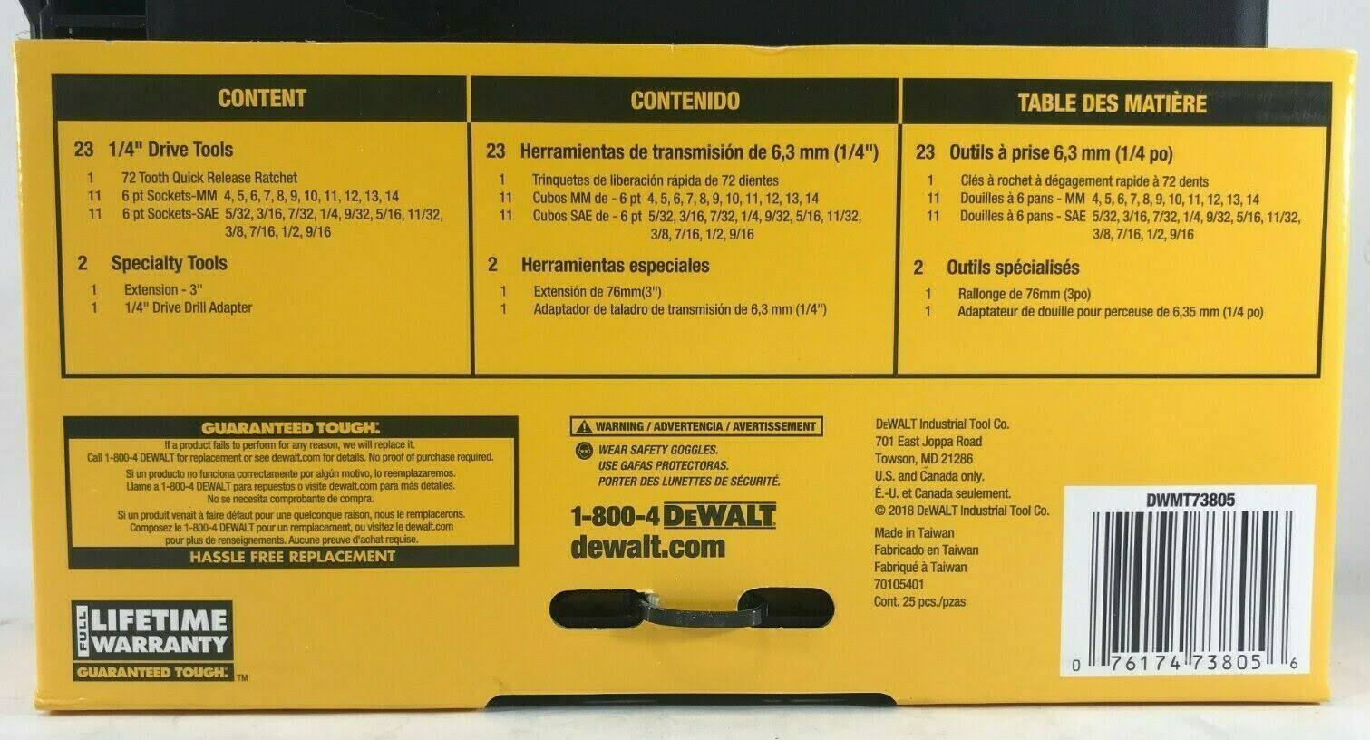 DeWalt DWMT73805 Tough Box Tool Kit 1/4'' Drive Socket Set, 25 Piece
