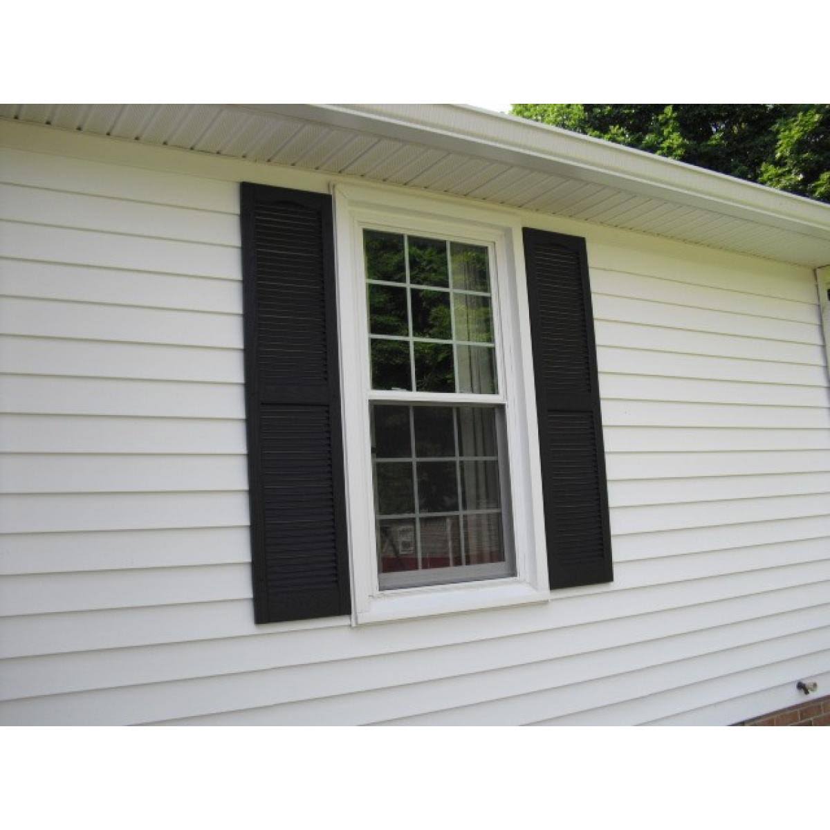 14 1/2 inchw x 25 inchh Mid-America Vinyl, Standard Size Cathedral Top Center Mullion, Open Louver Shutter, w/Installation Shutter-Lok's & Matching