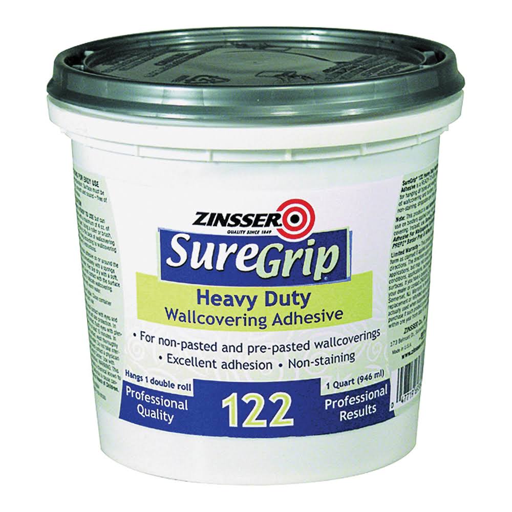 Zinsser & 69384 Suregrip 122 Wallcovering Adhesive, Clear, 1-Qt.