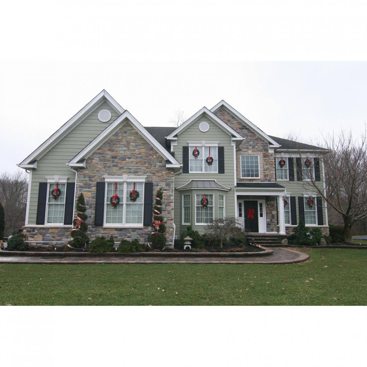 12 inchw x 25 inchh Mid-America Vinyl, Standard Size Cathedral Top Center Mullion, Open Louver Shutter, w/Installation Shutter-Lok's & Matching Screws