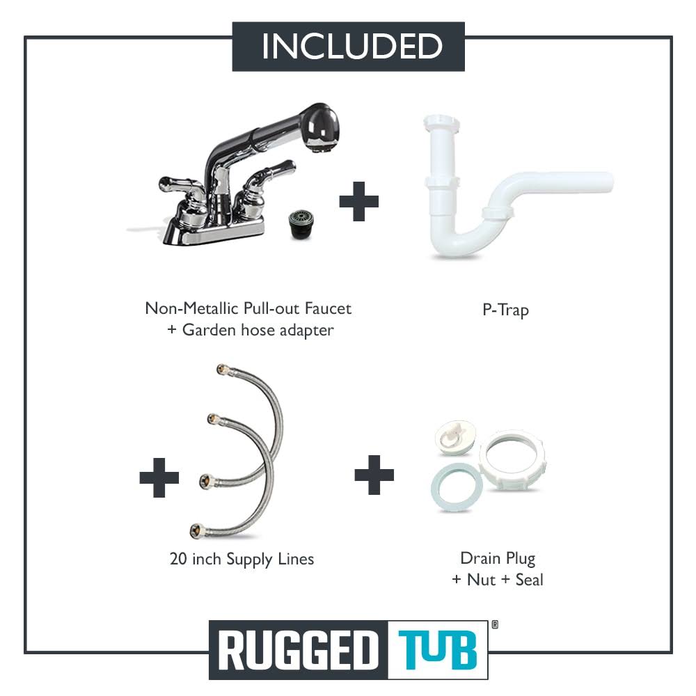 Rugged Tub 18 in. x 24 in. Recycled Polypropylene Black Laundry Sink with 2 Hdl Non Metallic Pullout Faucet and Installation Kit