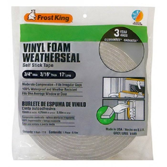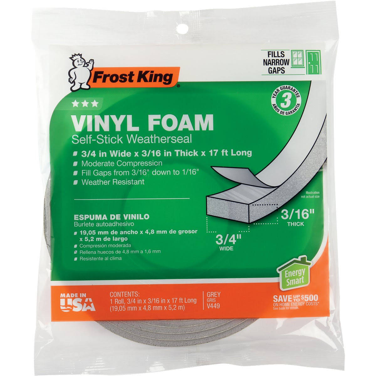 Frost King Vinyl Foam Tape- Closed Cell- Moderate Compression, 3/4" W, 3/16" Thick, 17' L, Grey