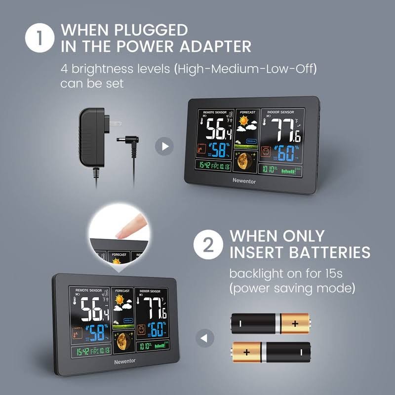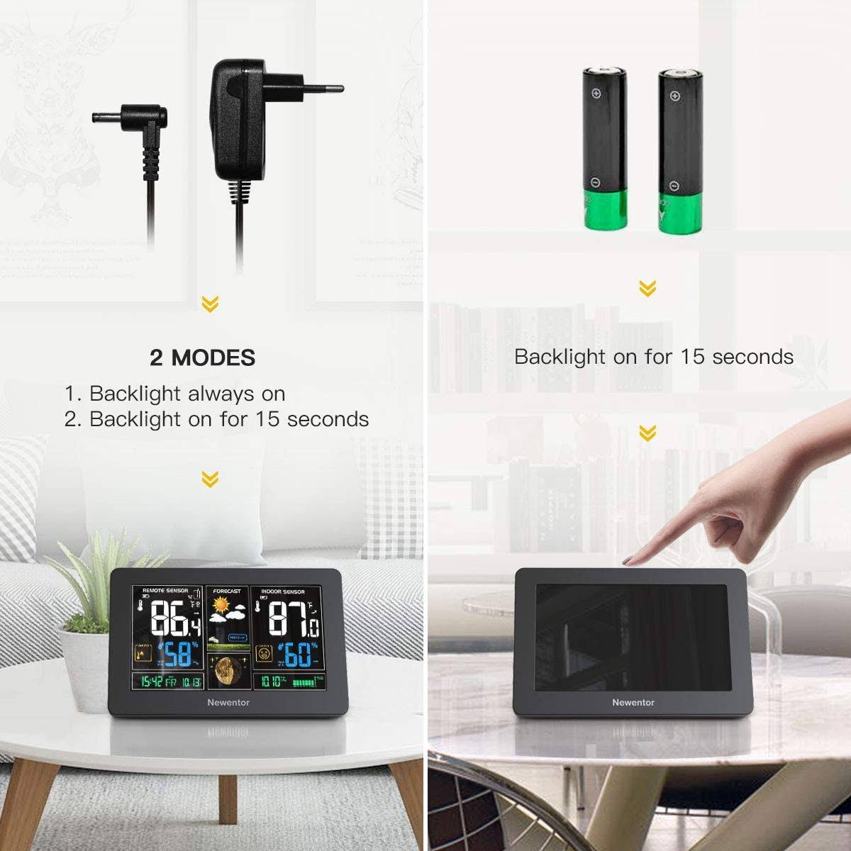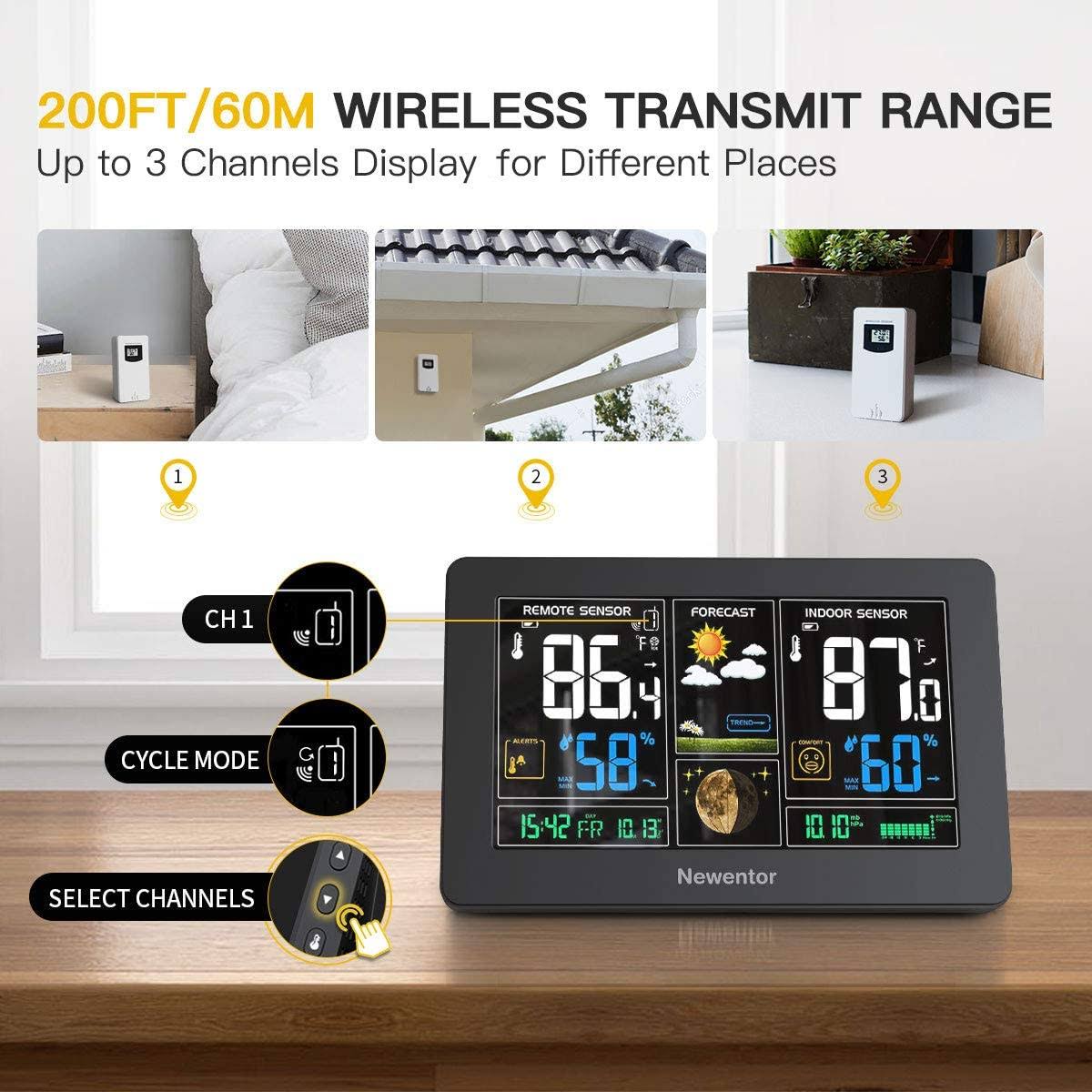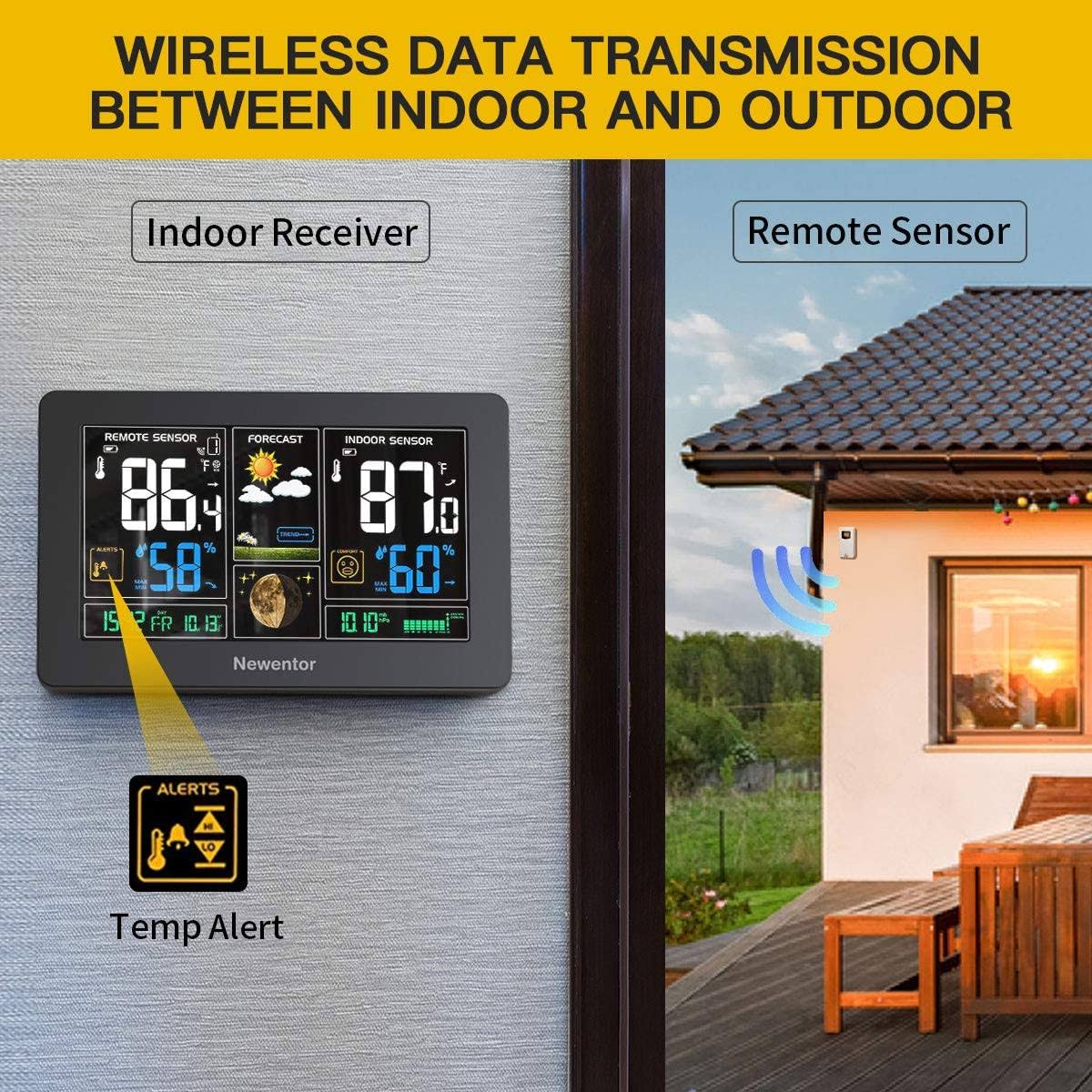 Newentor Weather Station Wireless Indoor Outdoor Thermometer , Color Display Digital Weather Thermometer with Atomic Clock