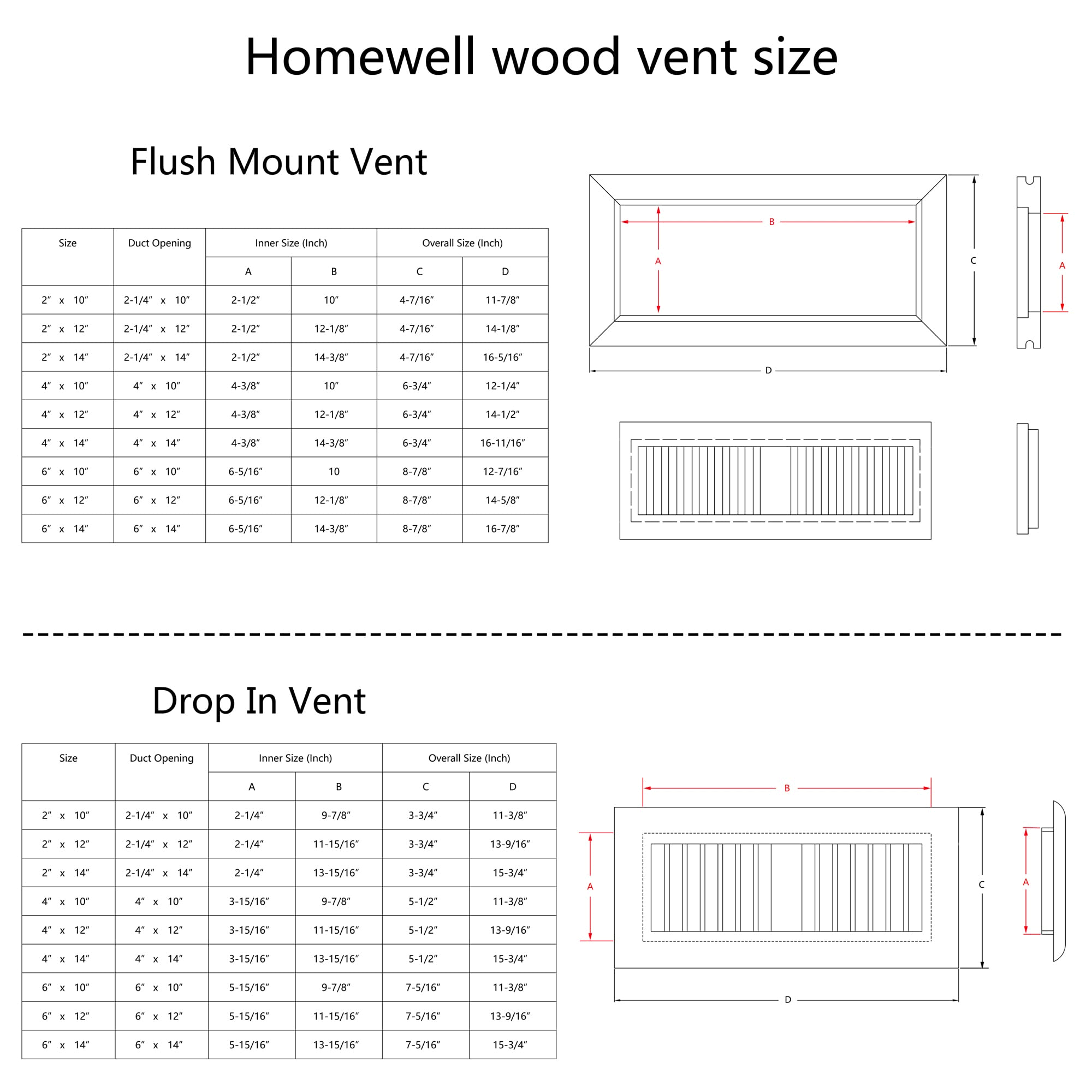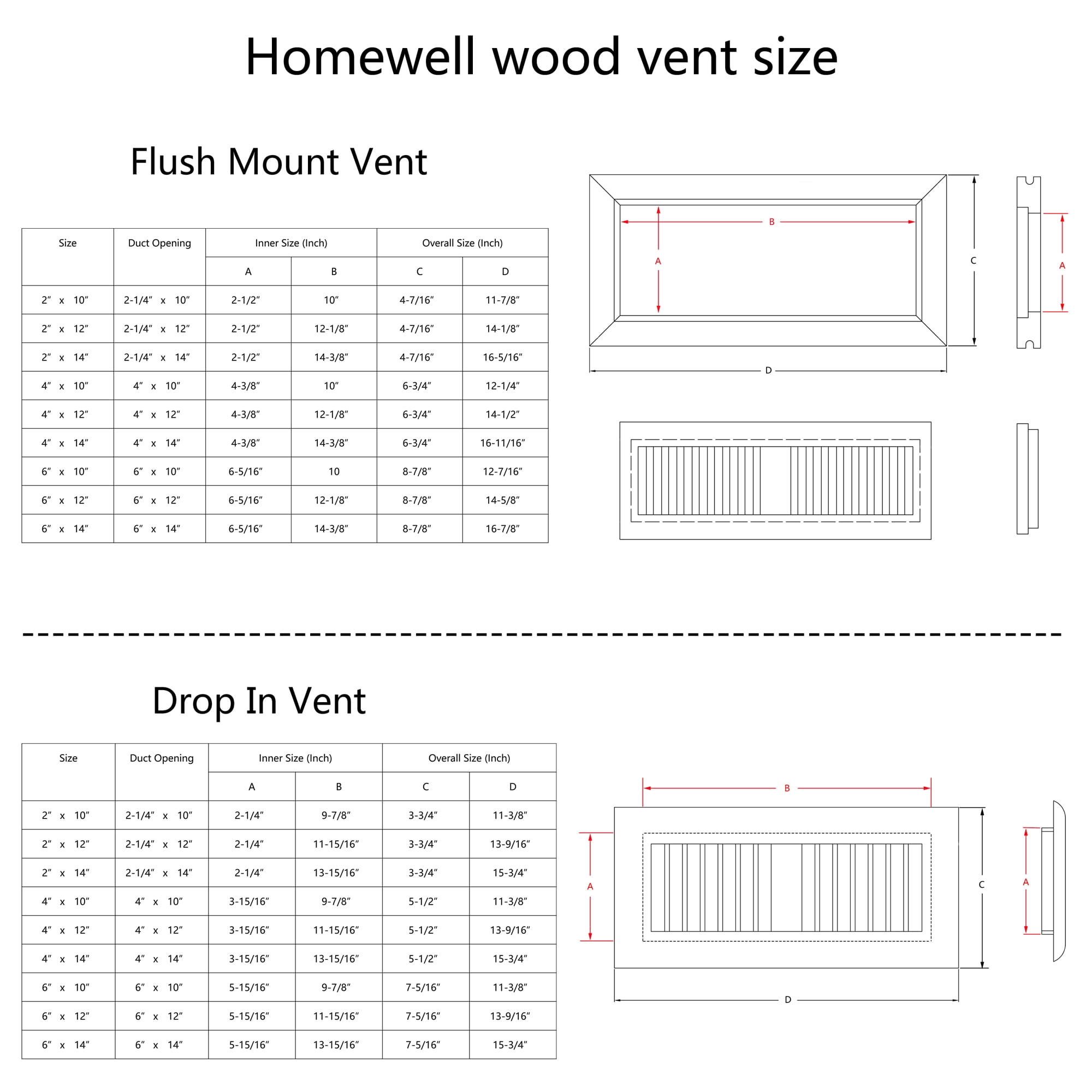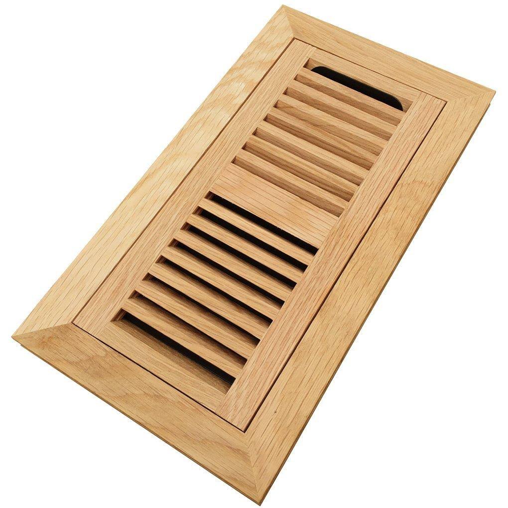 Homewell Red Oak Wood Floor Register Flush Mount Vent with Damper 4x10 inch Unfinished