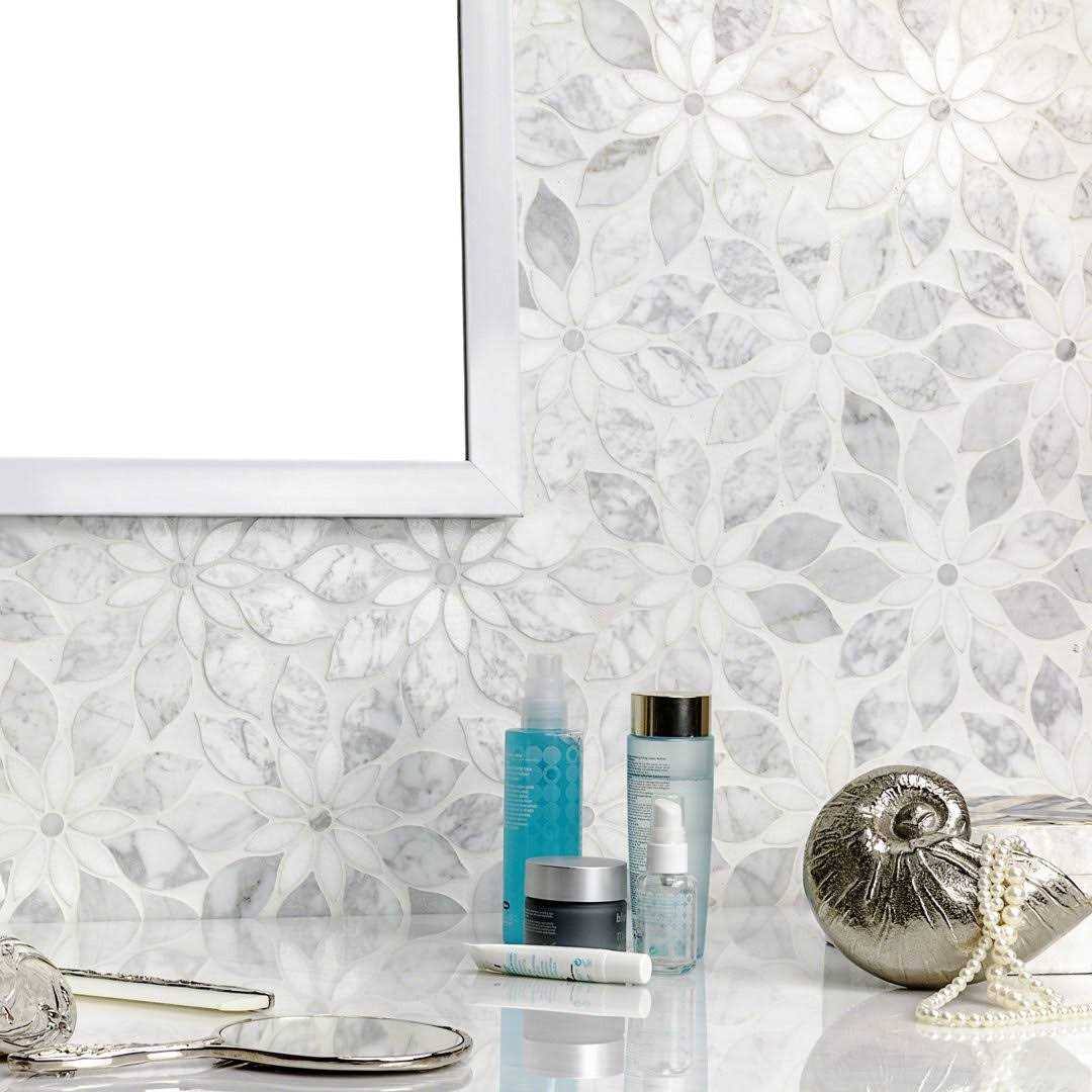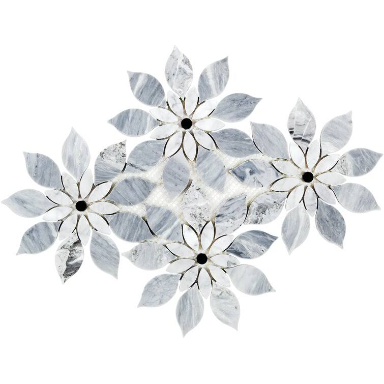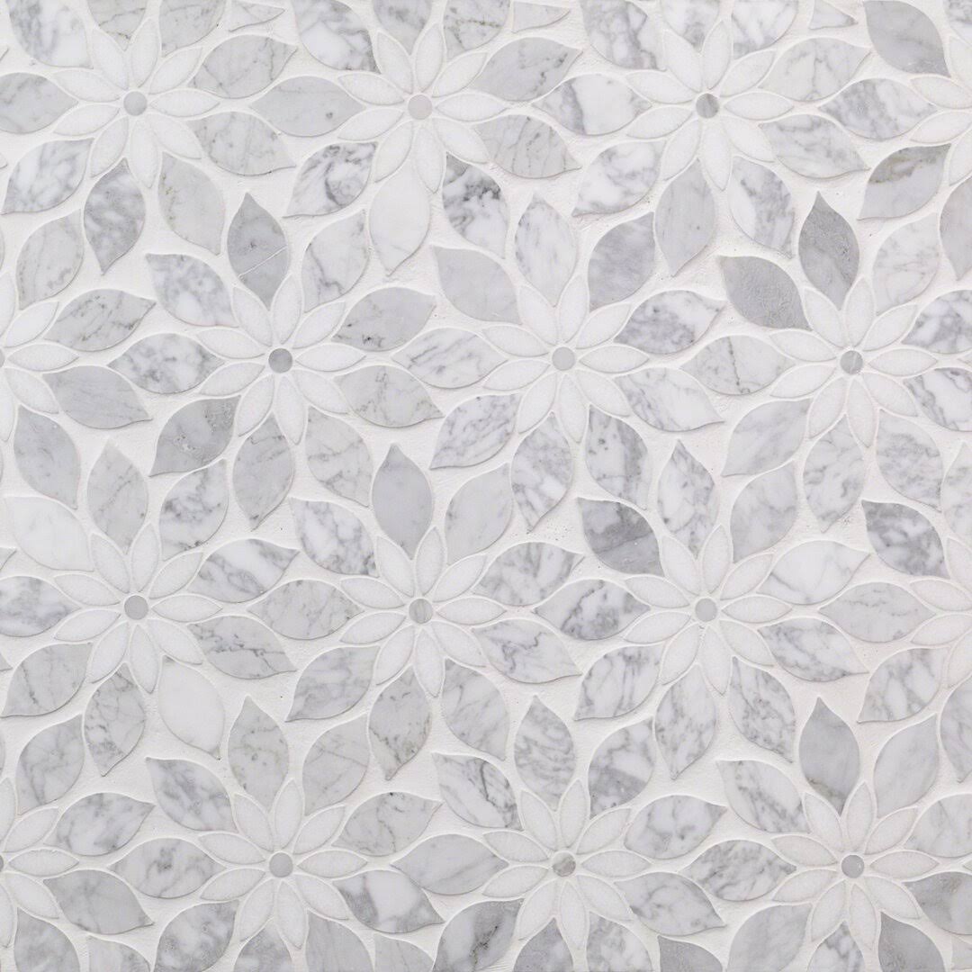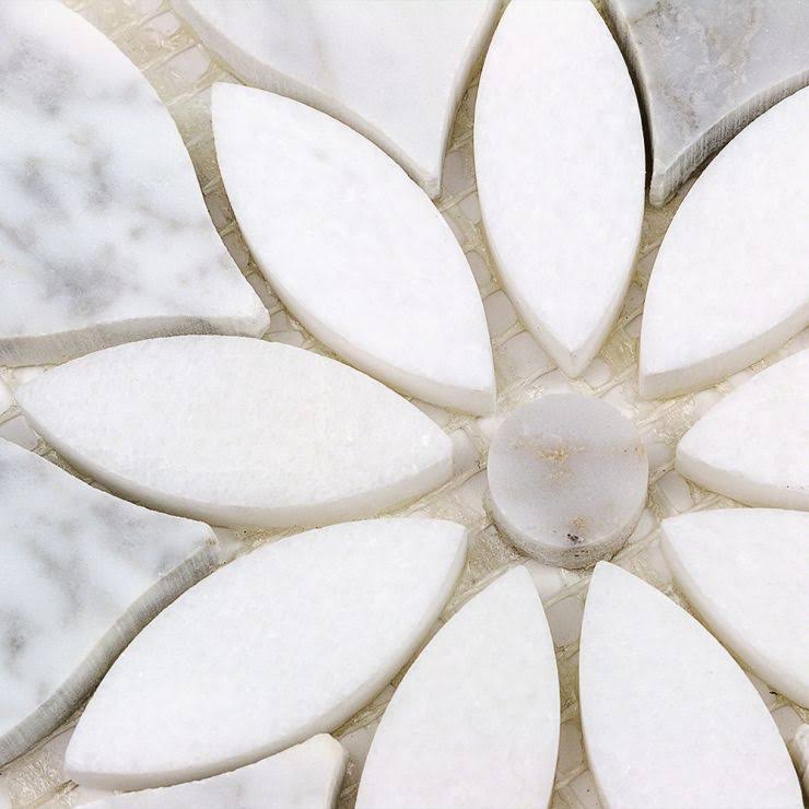 Ivy Hill Tile Thistle White 12.4 in. x 14.13 in. Polished Marble Mosaic Tile (1.21 Sq. ft./Sheet)