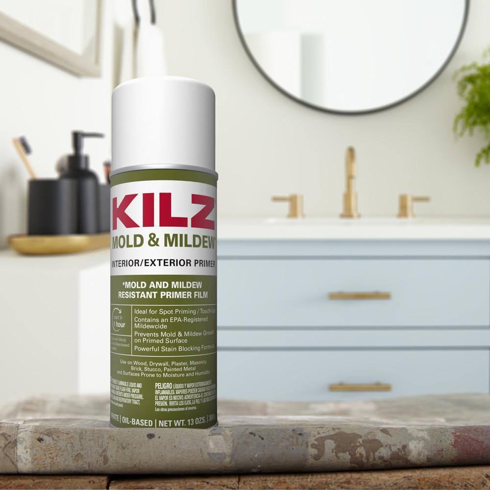 Kilz 13 oz. Mold & Mildew White Oil-Based Interior and Exterior Primer, Sealer and Stain-Blocker Aerosol, White/Matte