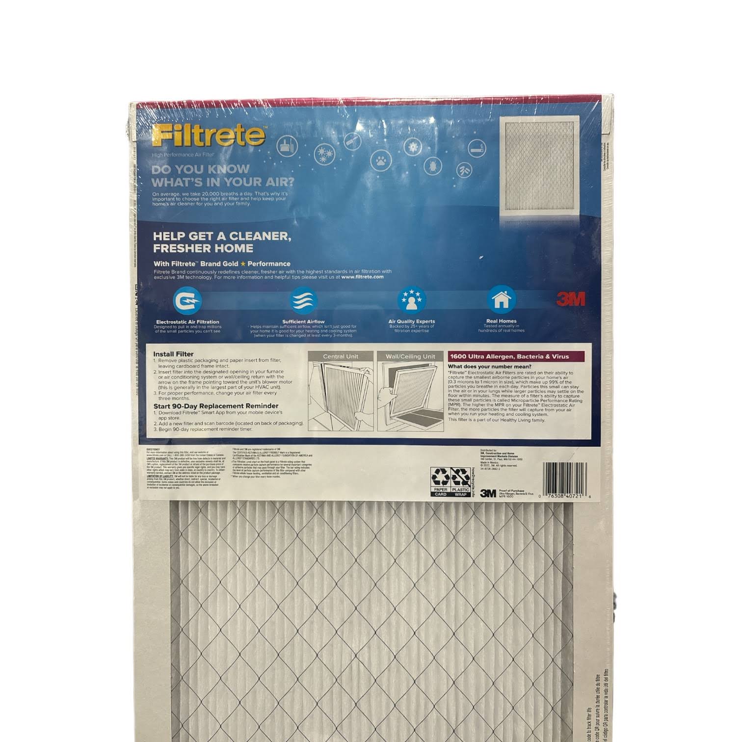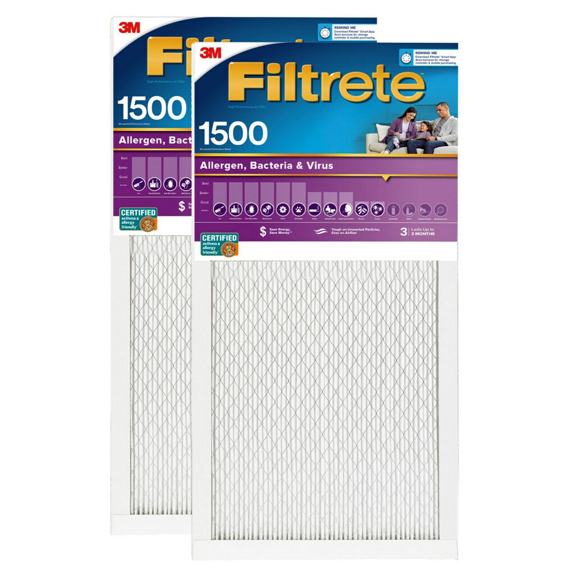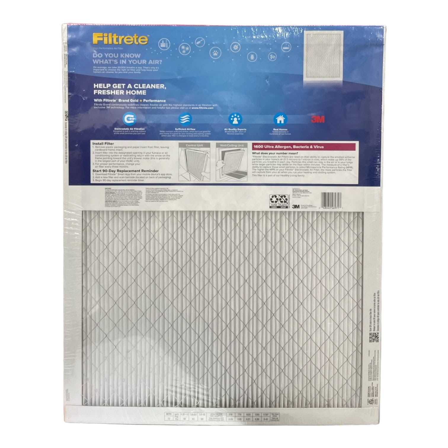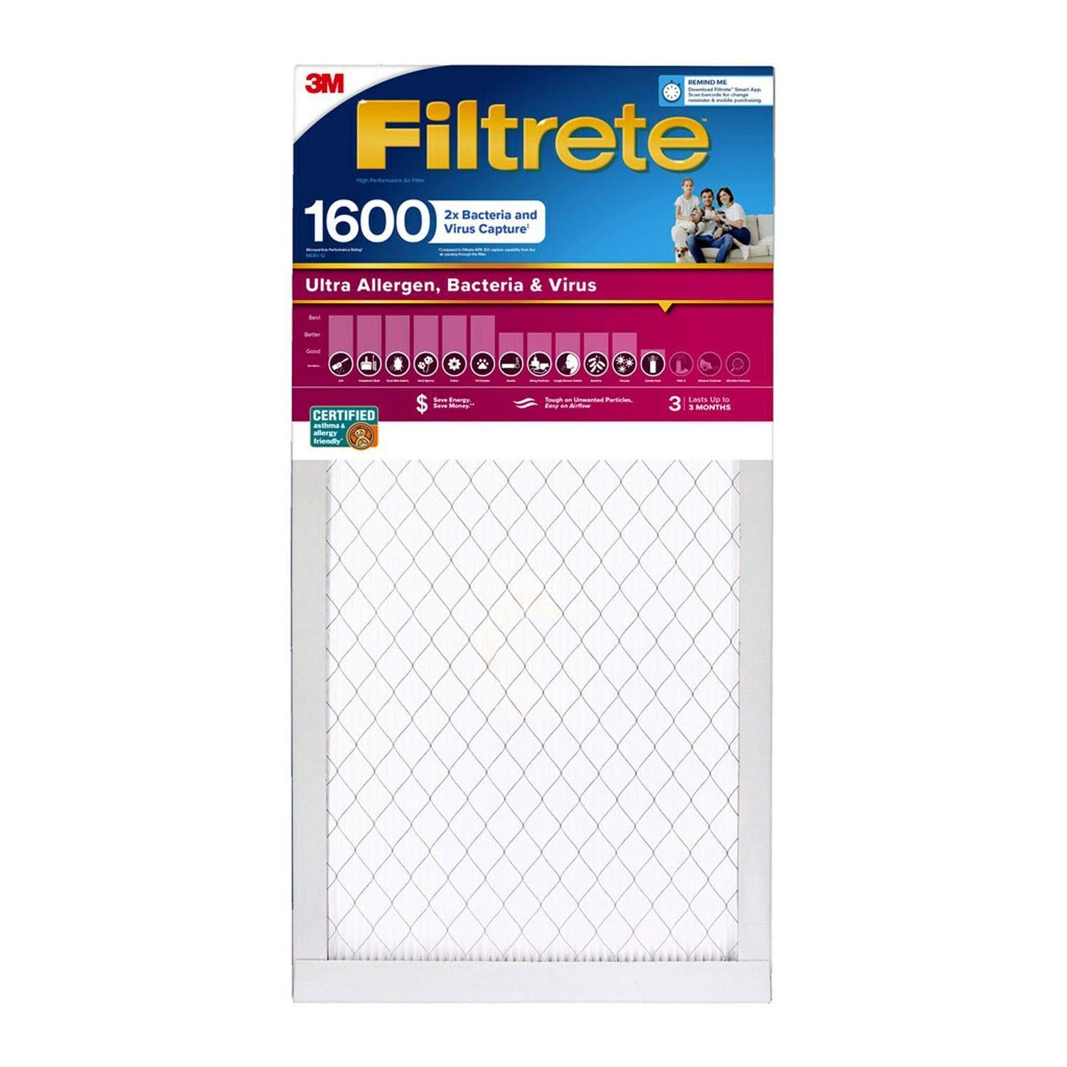 Filtrete Ultra Allergen 2x Bacteria and Virus Filter 14x25x1 1600 MPR 4 Pack