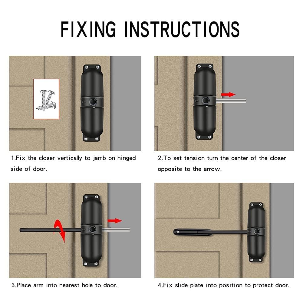 HoneSecur Safety Spring Door Closers Adjustable Closing Door Hinge Automatic Stopper Fire Rated to Convert Hinged Doors to Self Closing Doors- Black