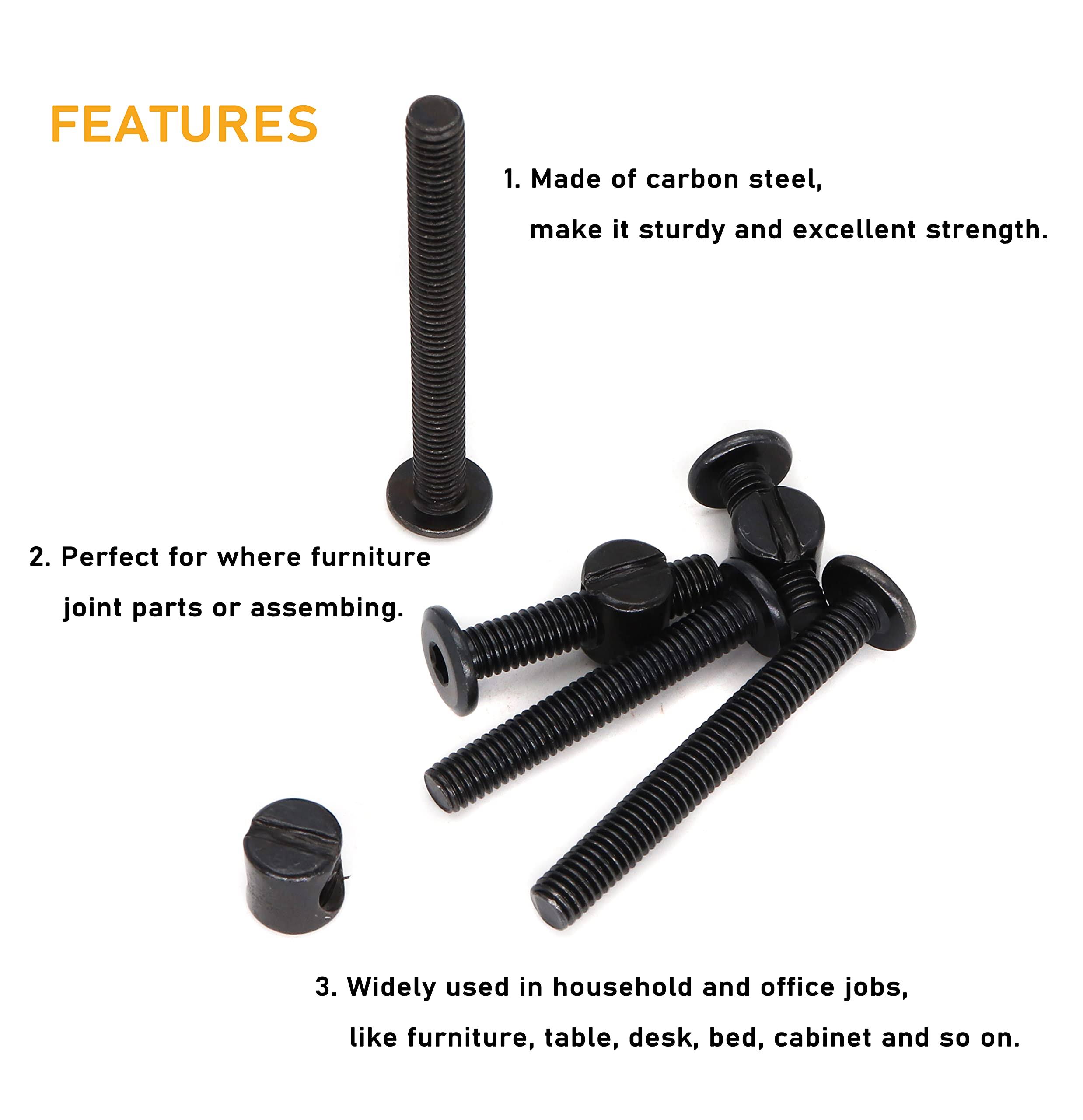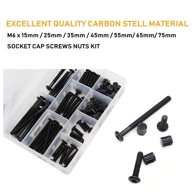 Baby Bed Crib Screws Hardware Replacement Kit, binifiMux 100pcs M6x15mm25mm35mm45mm55mm65mm75mm Black Hex Drive Socket Cap Screws Barrel Nuts