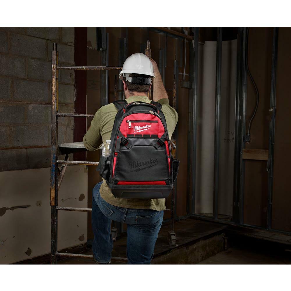 Milwaukee 10 in. Jobsite Backpack with 7-Pocket Compact Utility Pouch Red