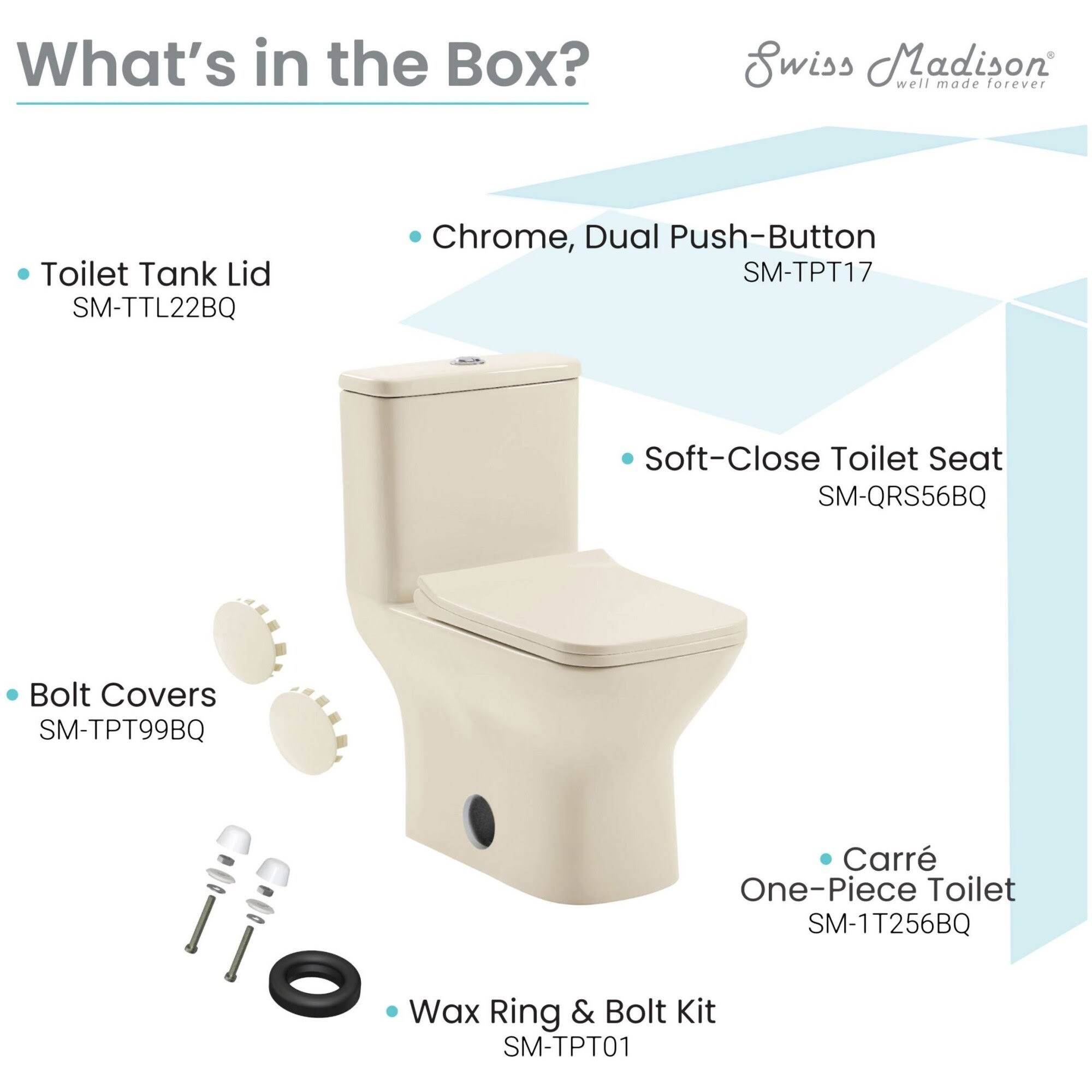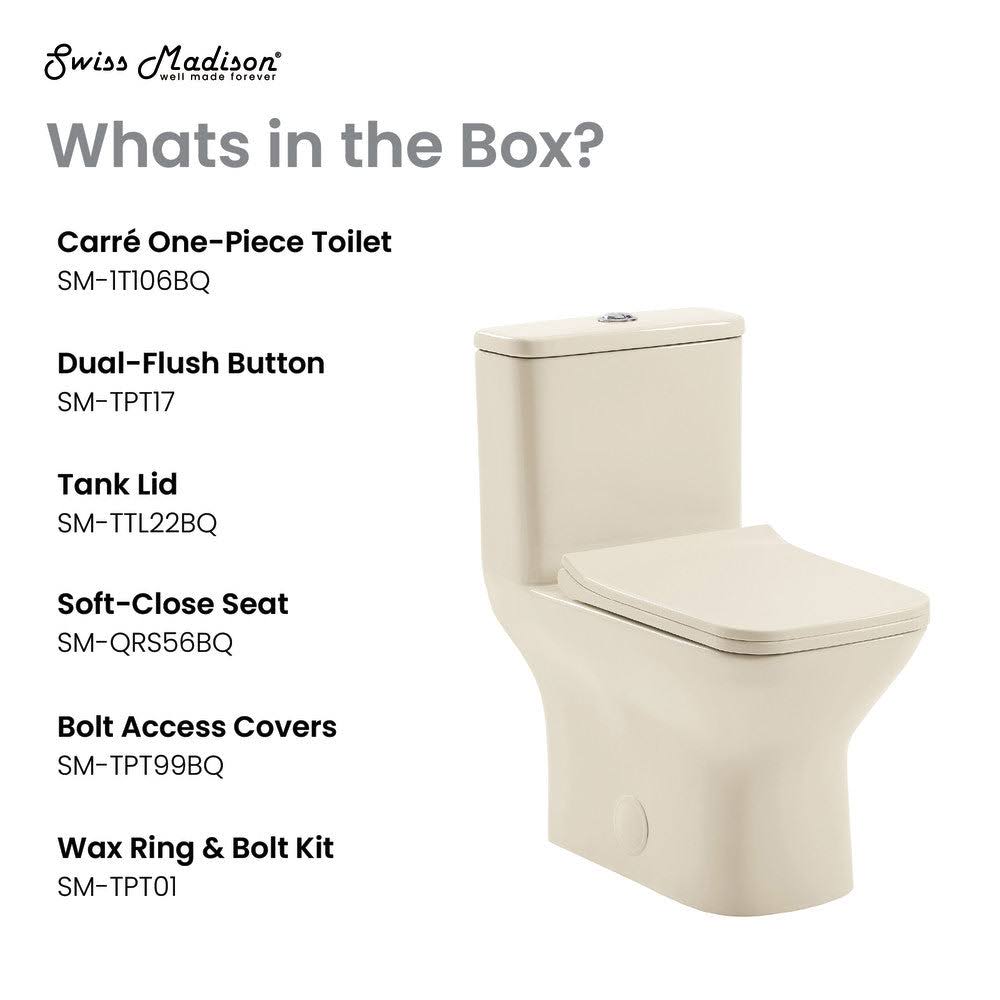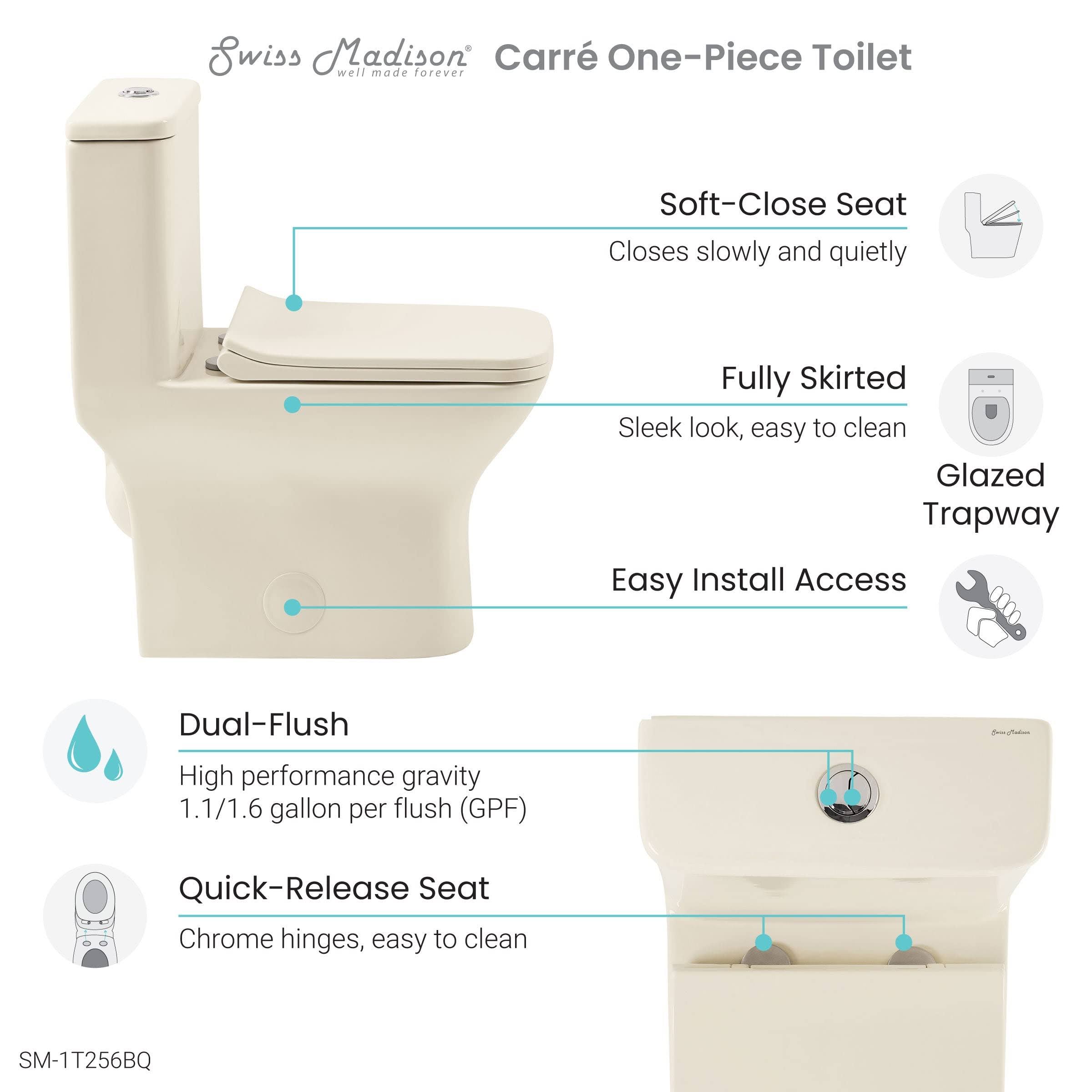 Swiss Madison Carre One Piece Square Toilet Dual Flush 1.1/1.6 GPF in Bisque