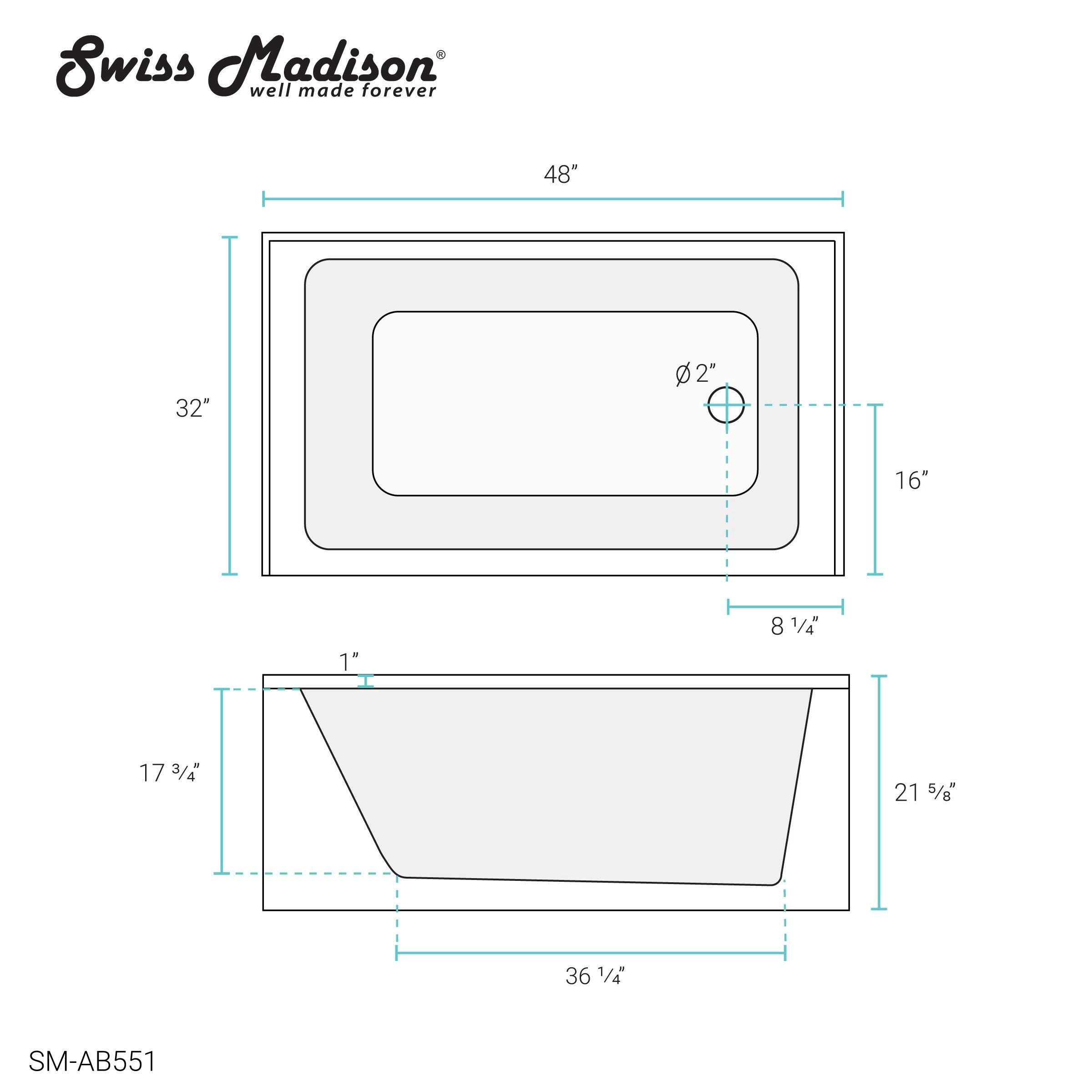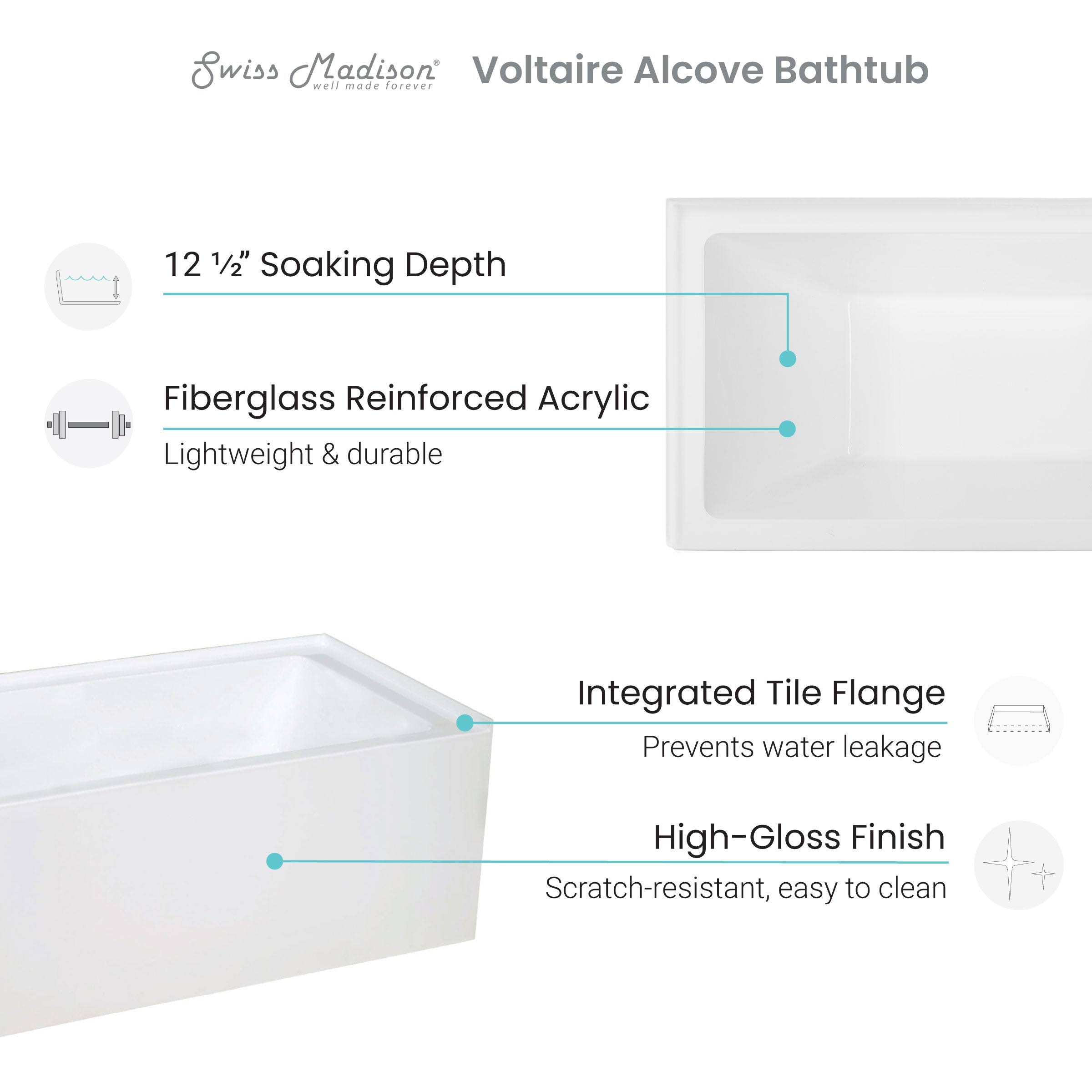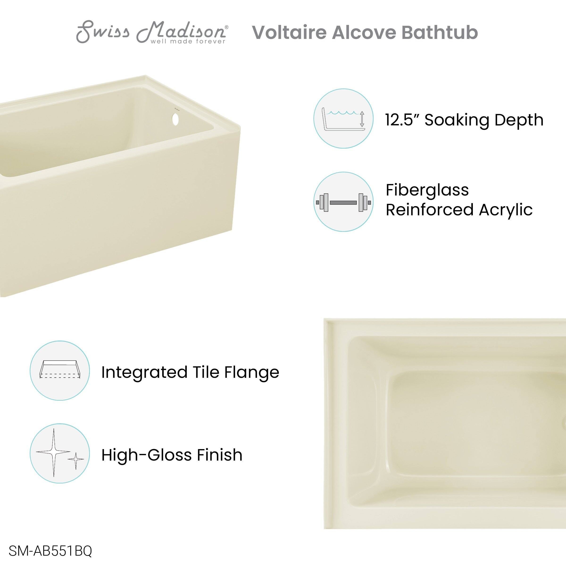 Swiss Madison Voltaire 48 inch x 32 inch Right-Hand Drain Alcove Bathtub with Apron, White