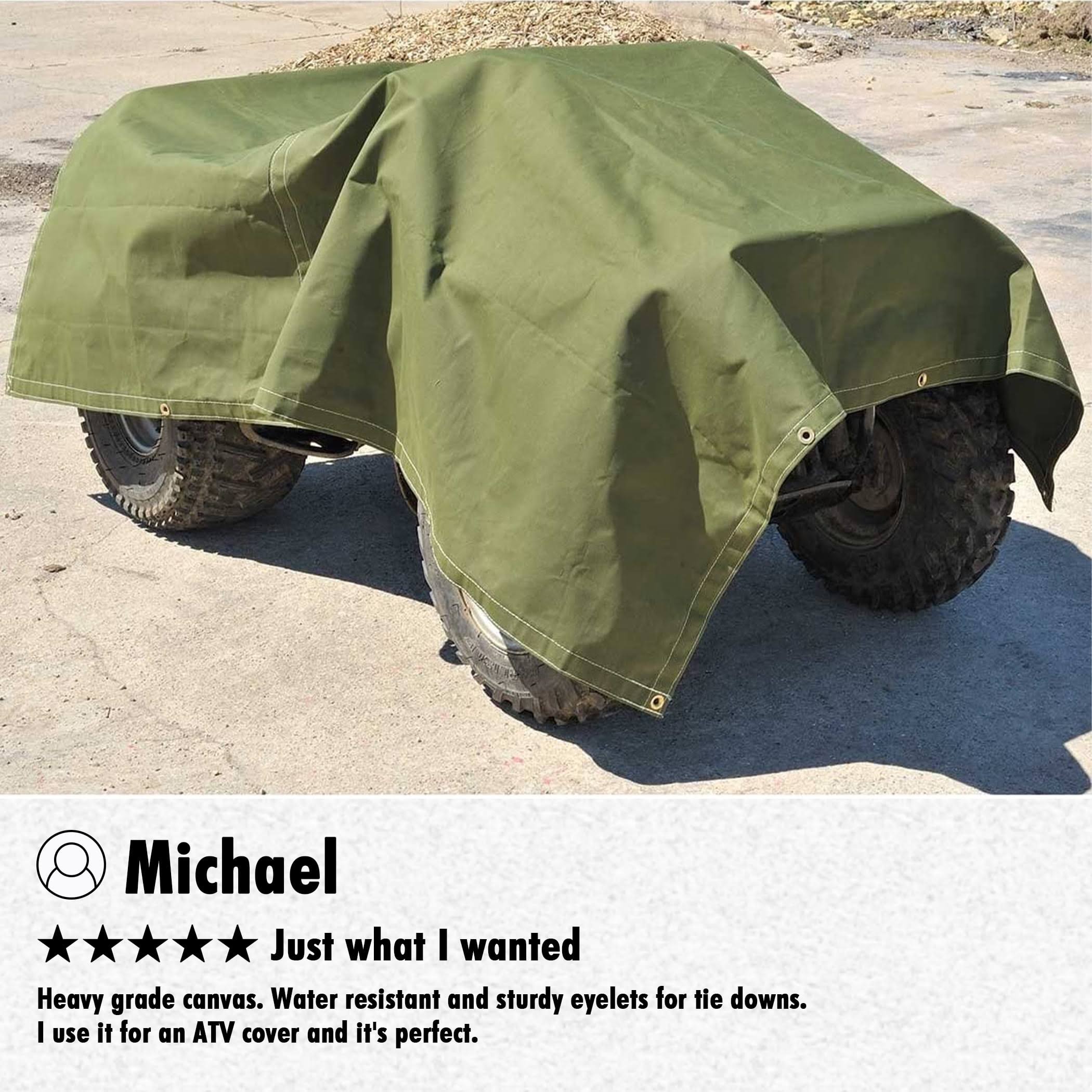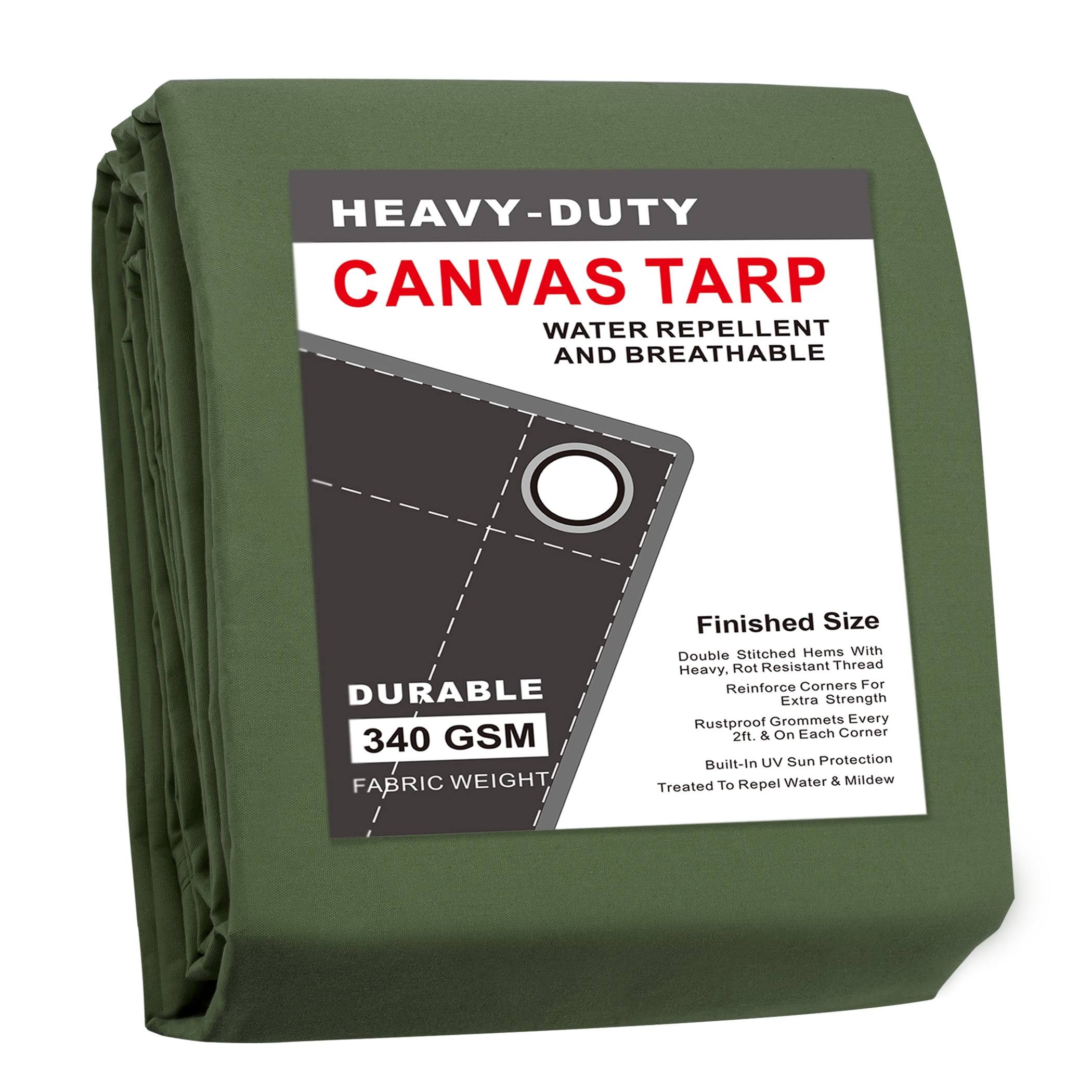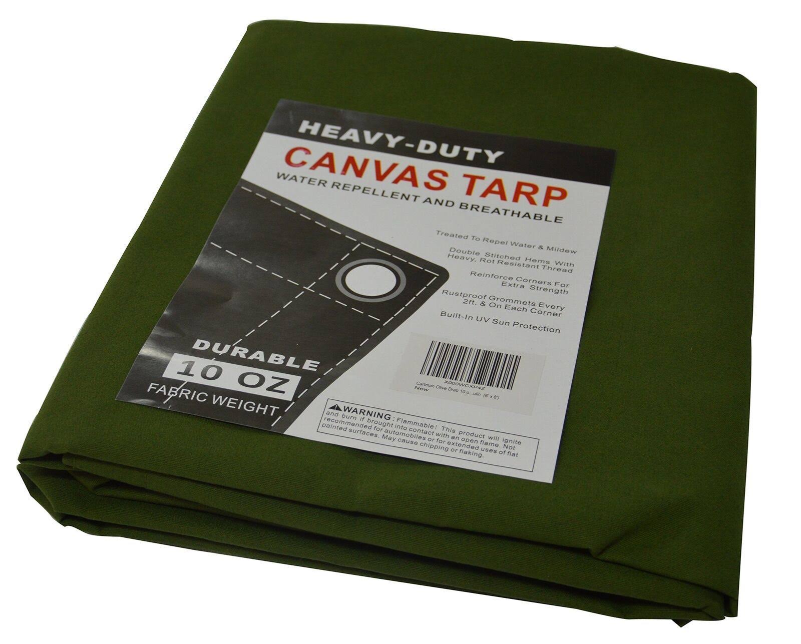 Cartman Canvas Tarp 10'x12', Heavy Duty Canvas Tarpaulin with Rustproof Grommets for Industrial & Commercial Use, Olive Drab, Finished Size 10 x 12 ft