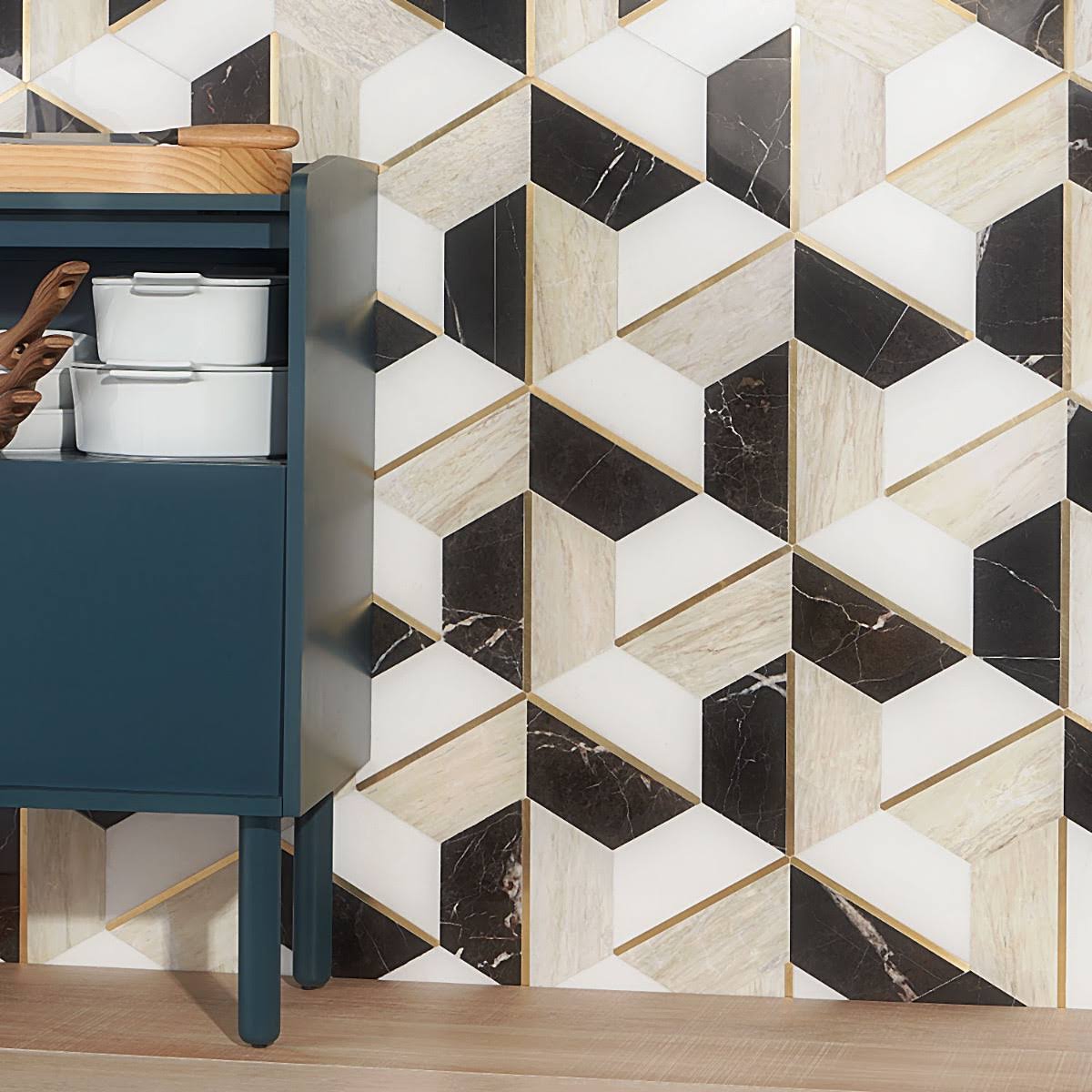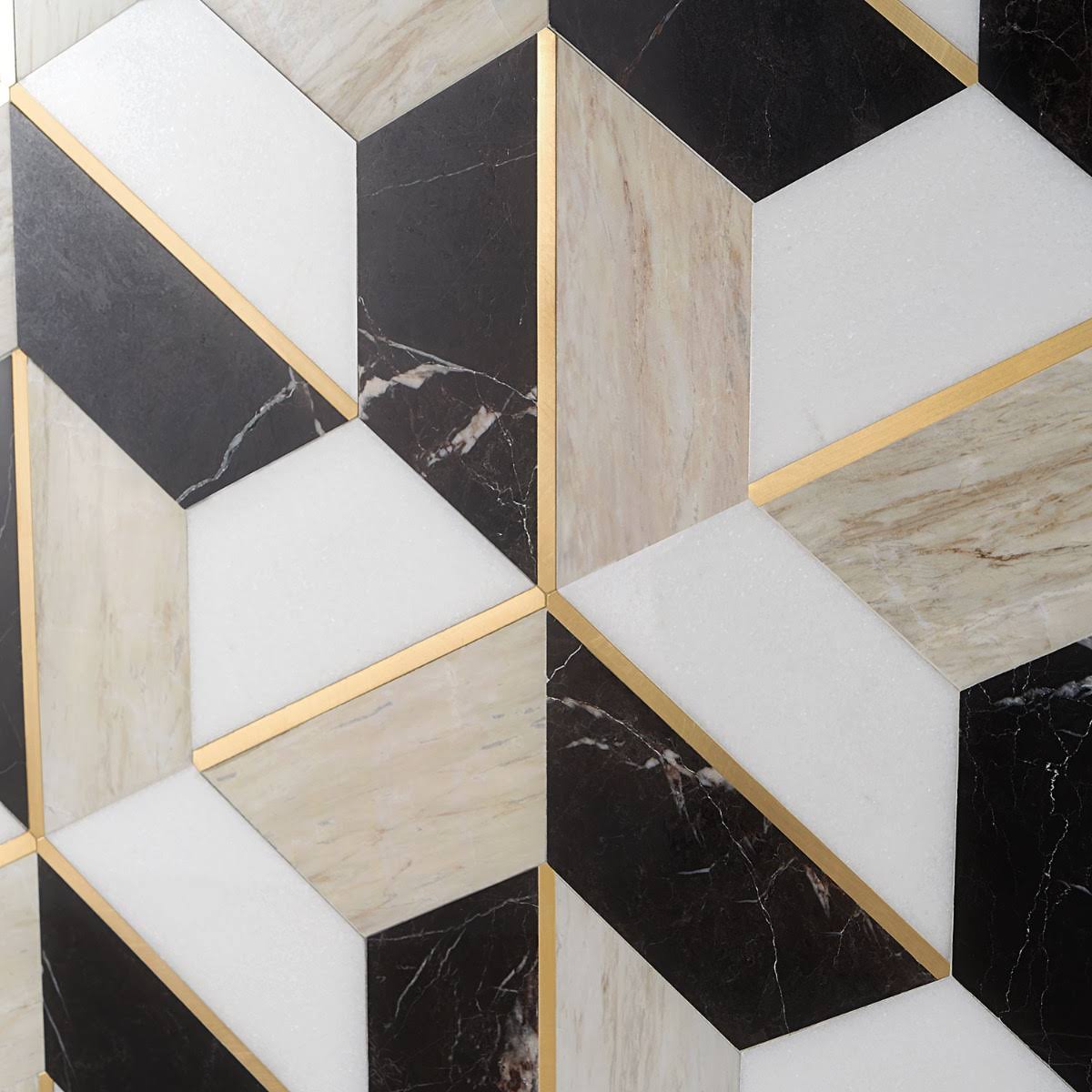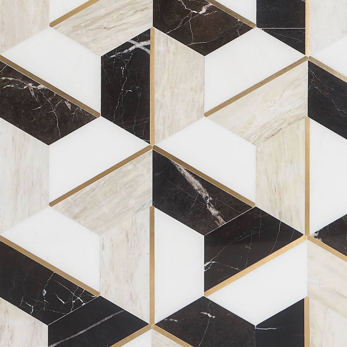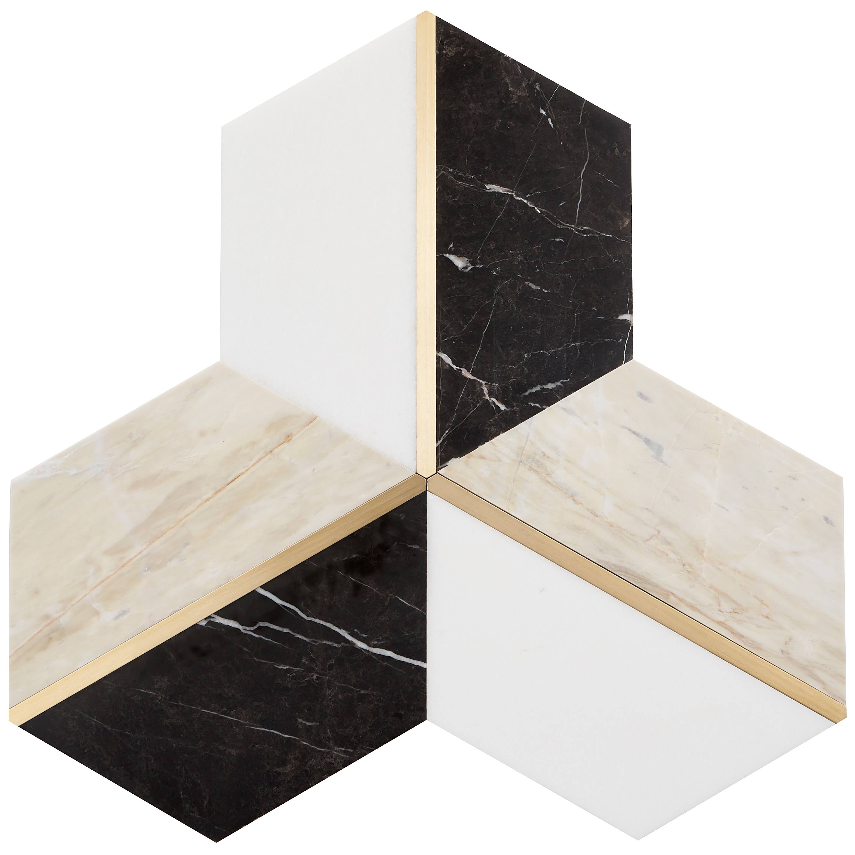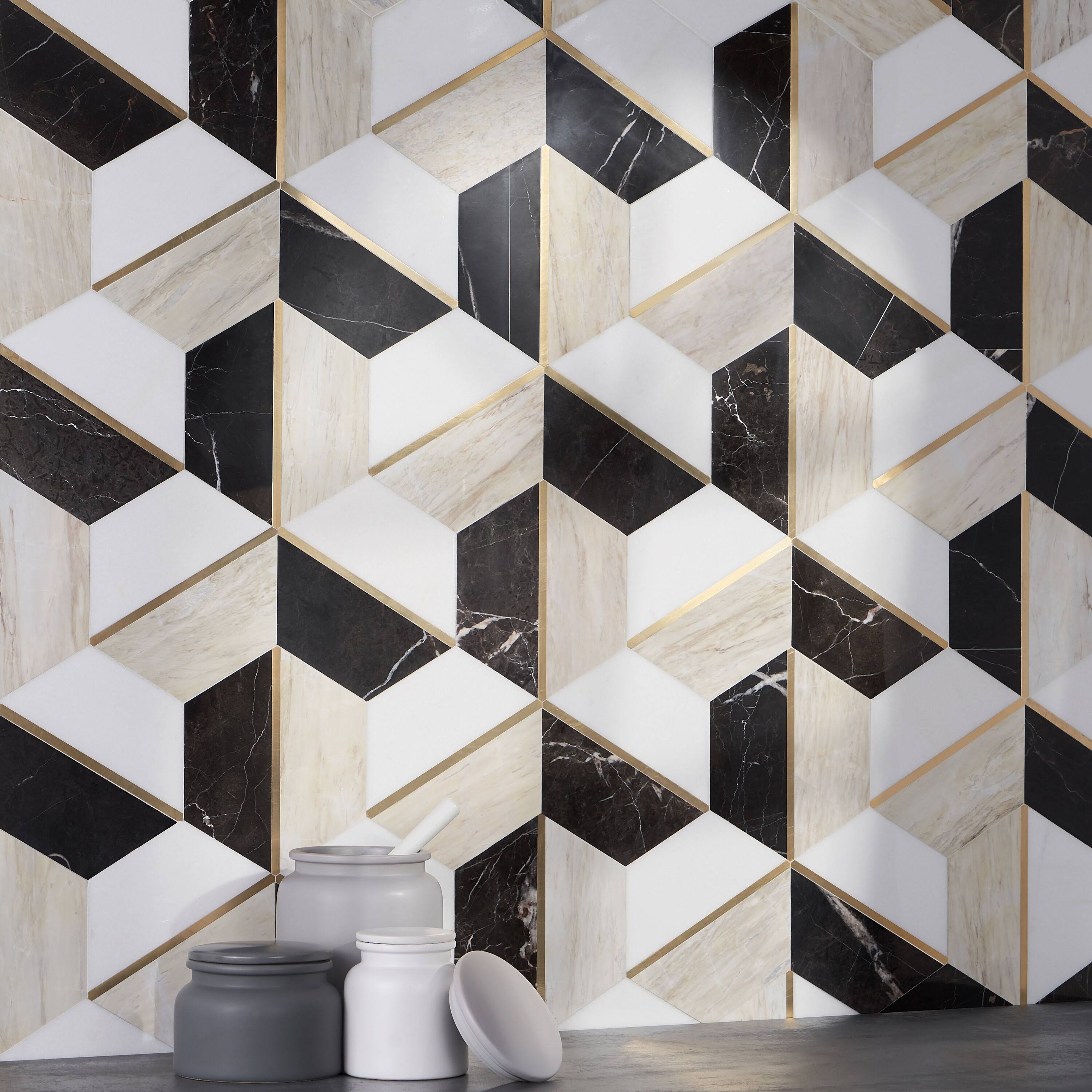 Ivy Hill Tile Timbira Saint Laurent 11.81 in. x 10.23 in. Polished Marble and Brass Wall Mosaic Tile (0.83 Sq. ft./Each)