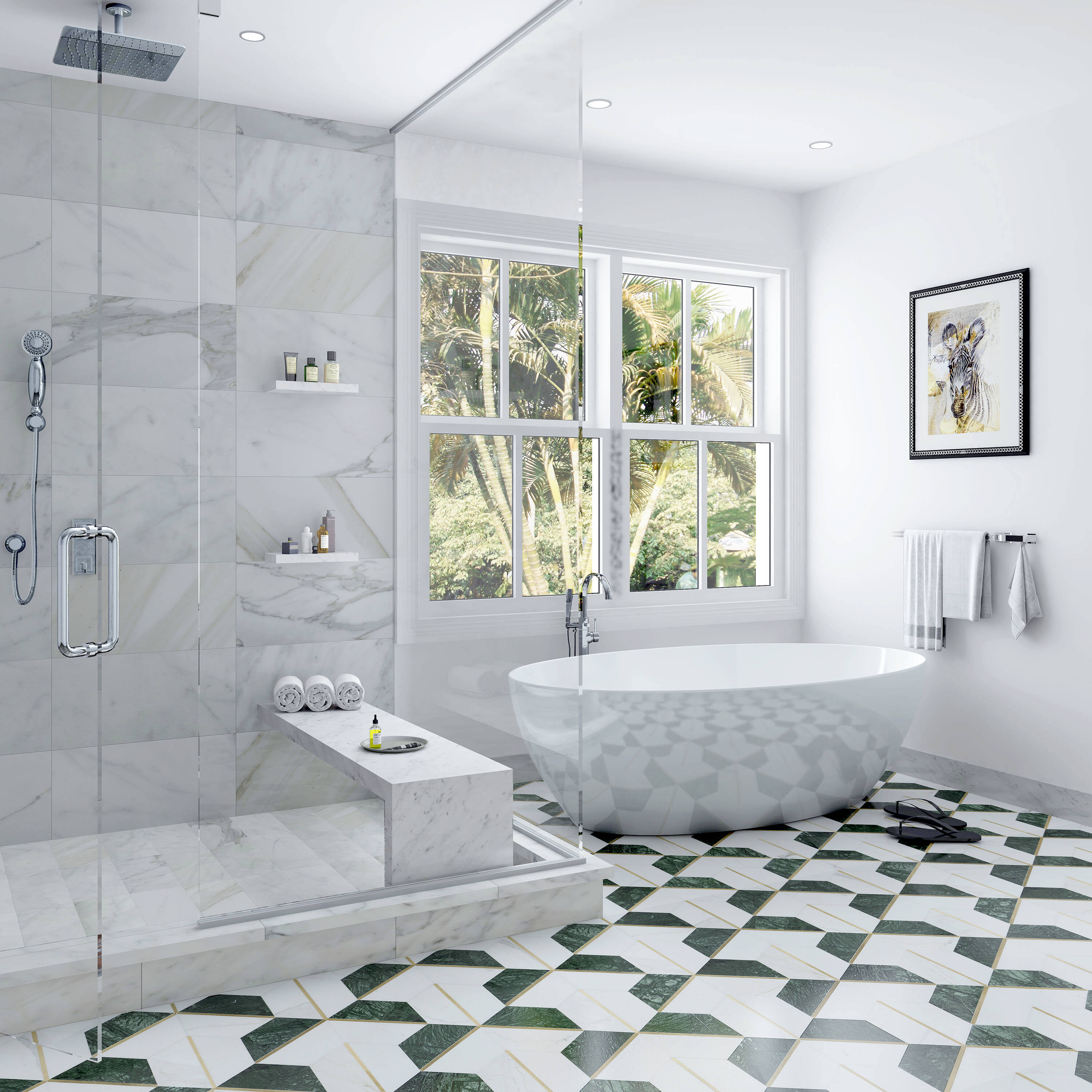 Ivy Hill Tile Timbira Verde 11.81 in. x 10.23 in. Polished Marble and Brass Wall Mosaic Tile (0.83 Sq. ft./Each)