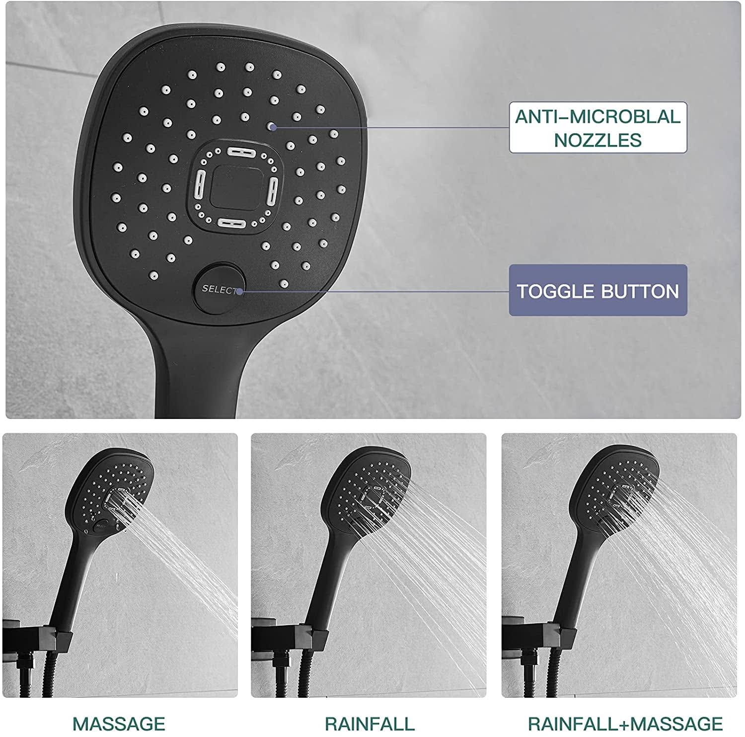 BWE Single-Handle 2-Spray of Rain Shower Head System Shower Faucet and Handheld Shower Kit in Matte Black (Valve Included)