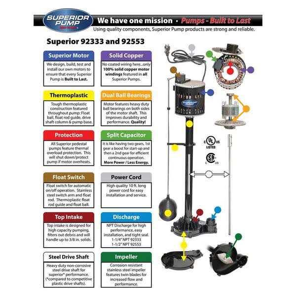Superior Pump 1/3 HP Thermoplastic Pedestal Sump Pump- 92333