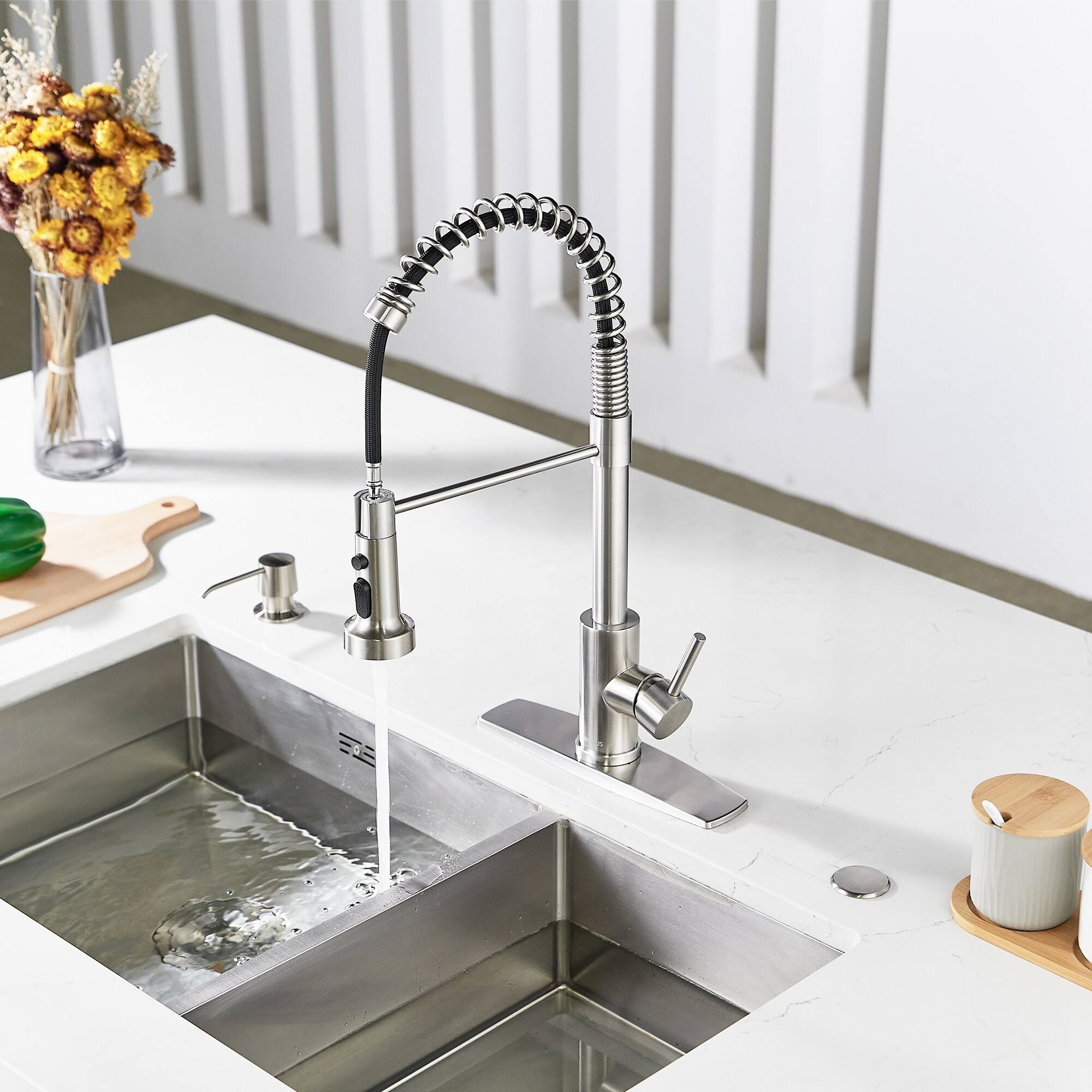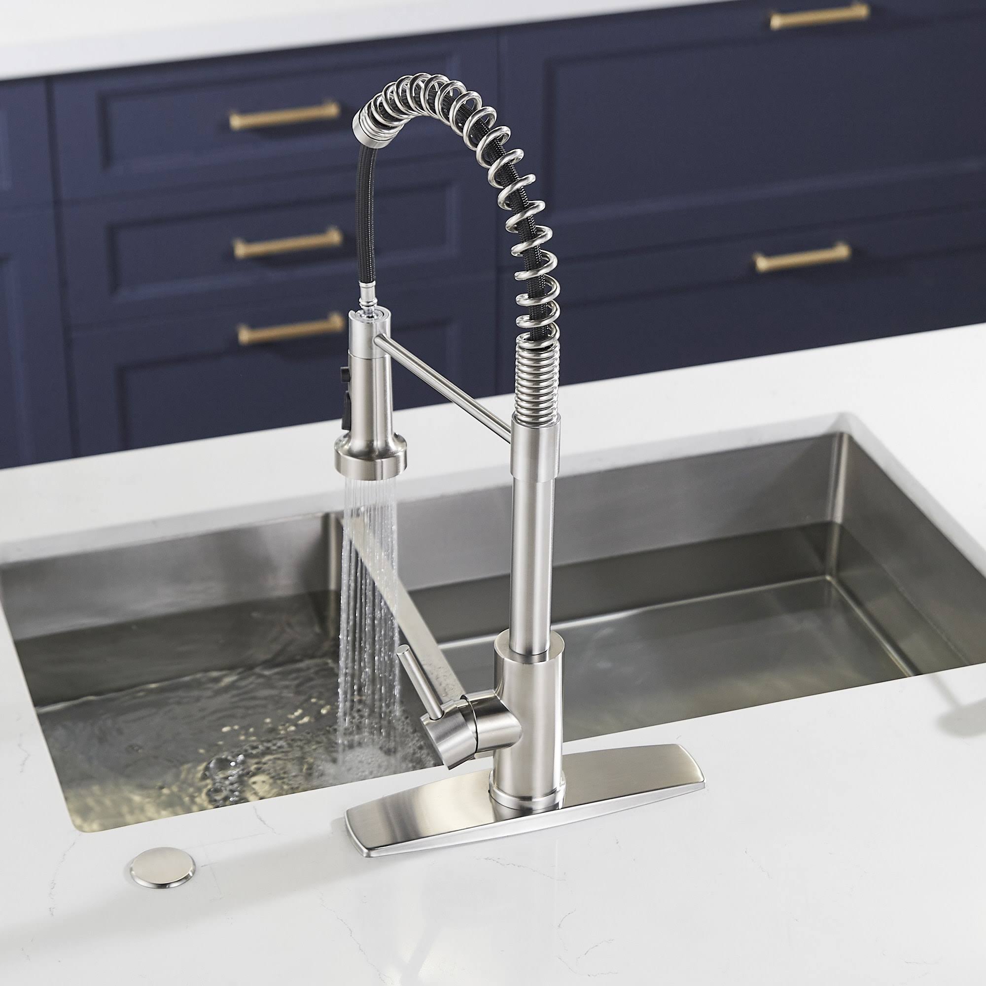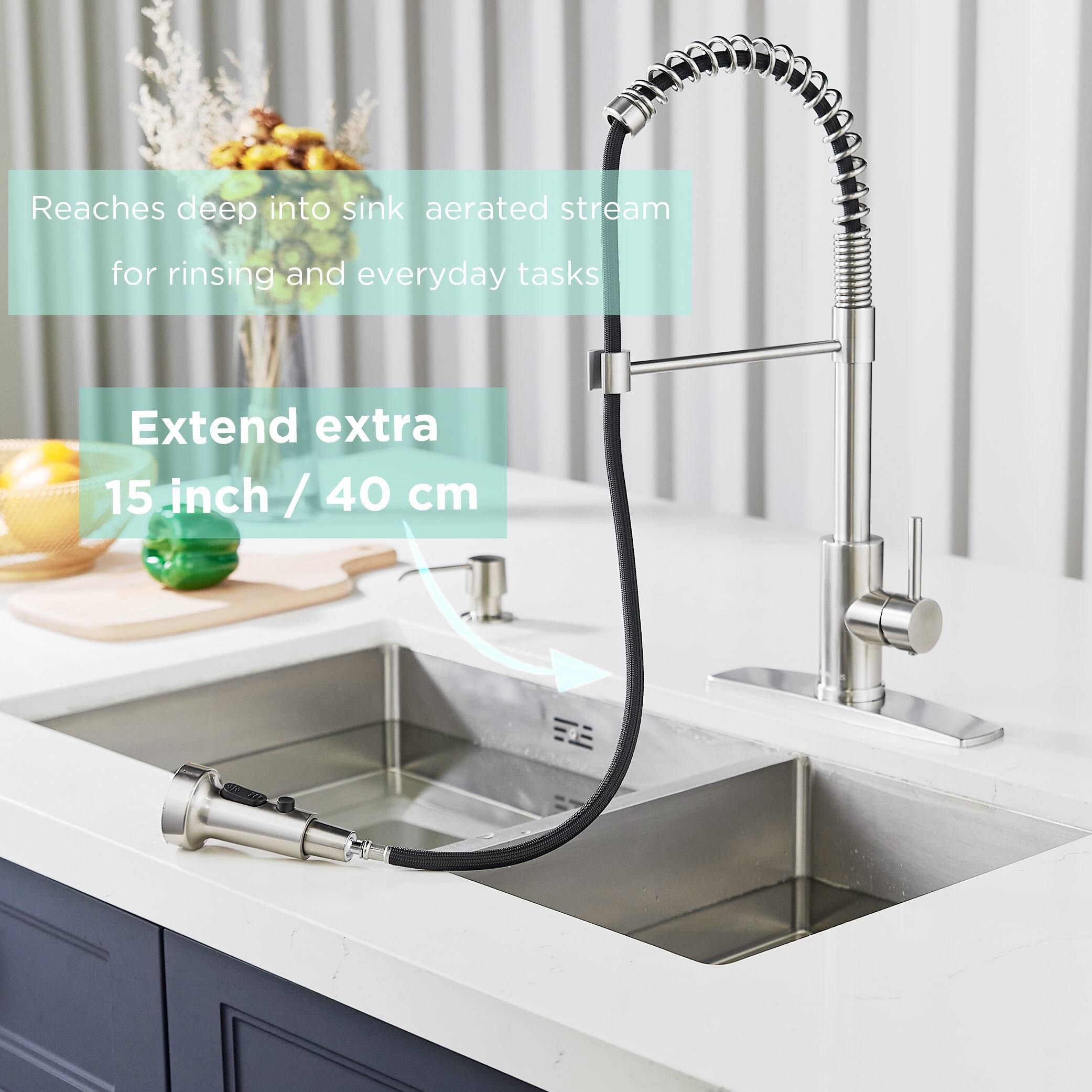 FORIOUS Kitchen Faucet Stainless Steel Single Handle Pull-Down Kitchen Faucet with Deck Plate | LL0024BN