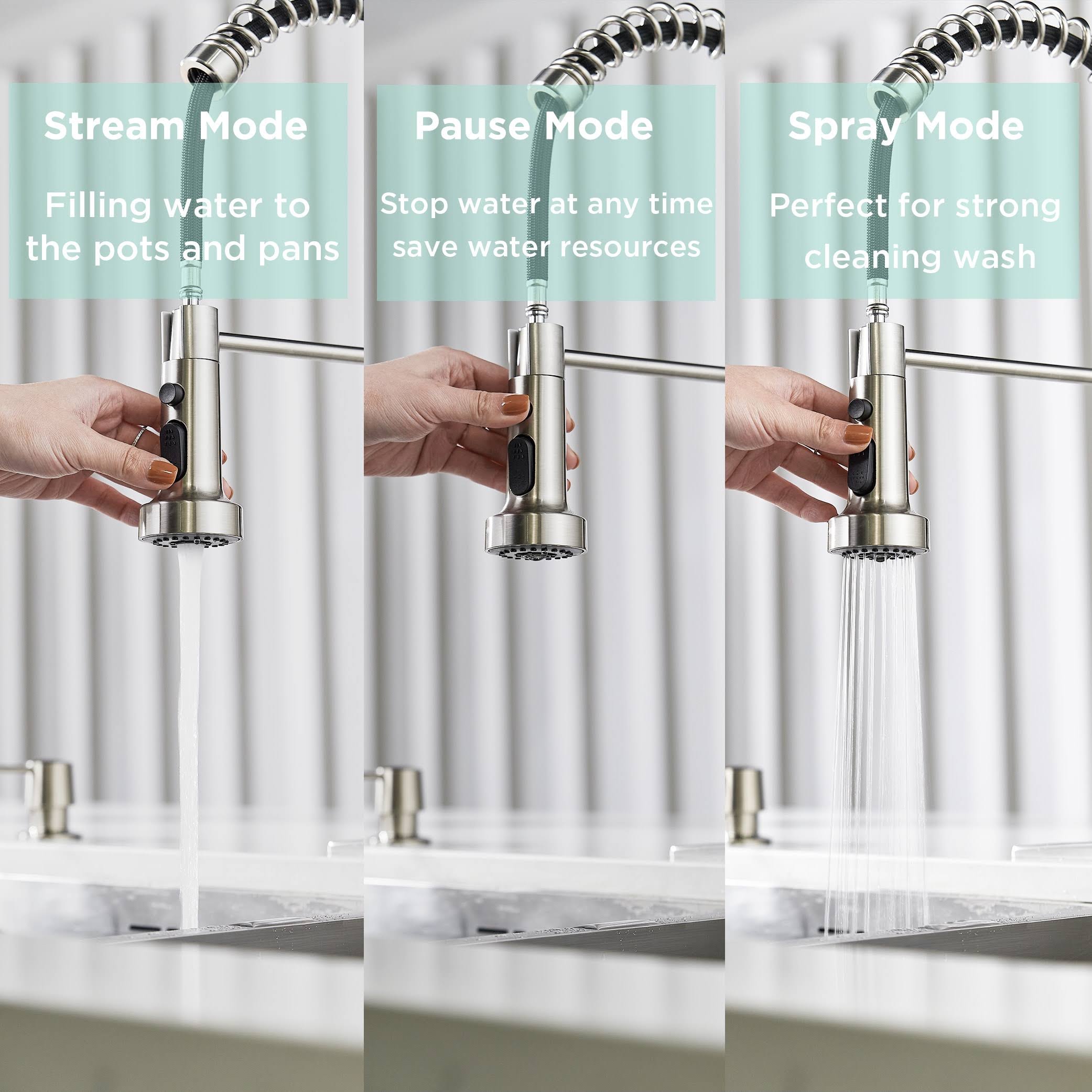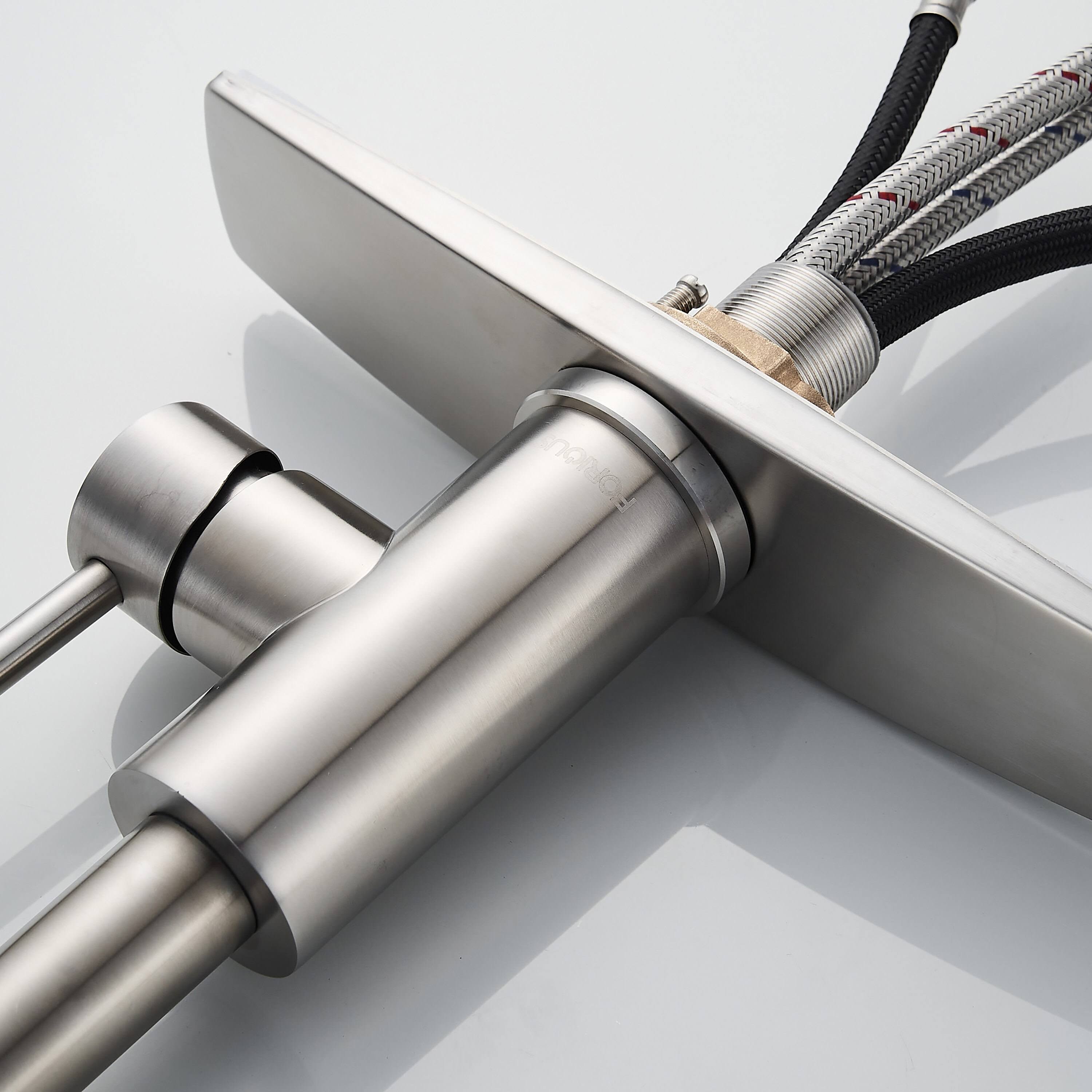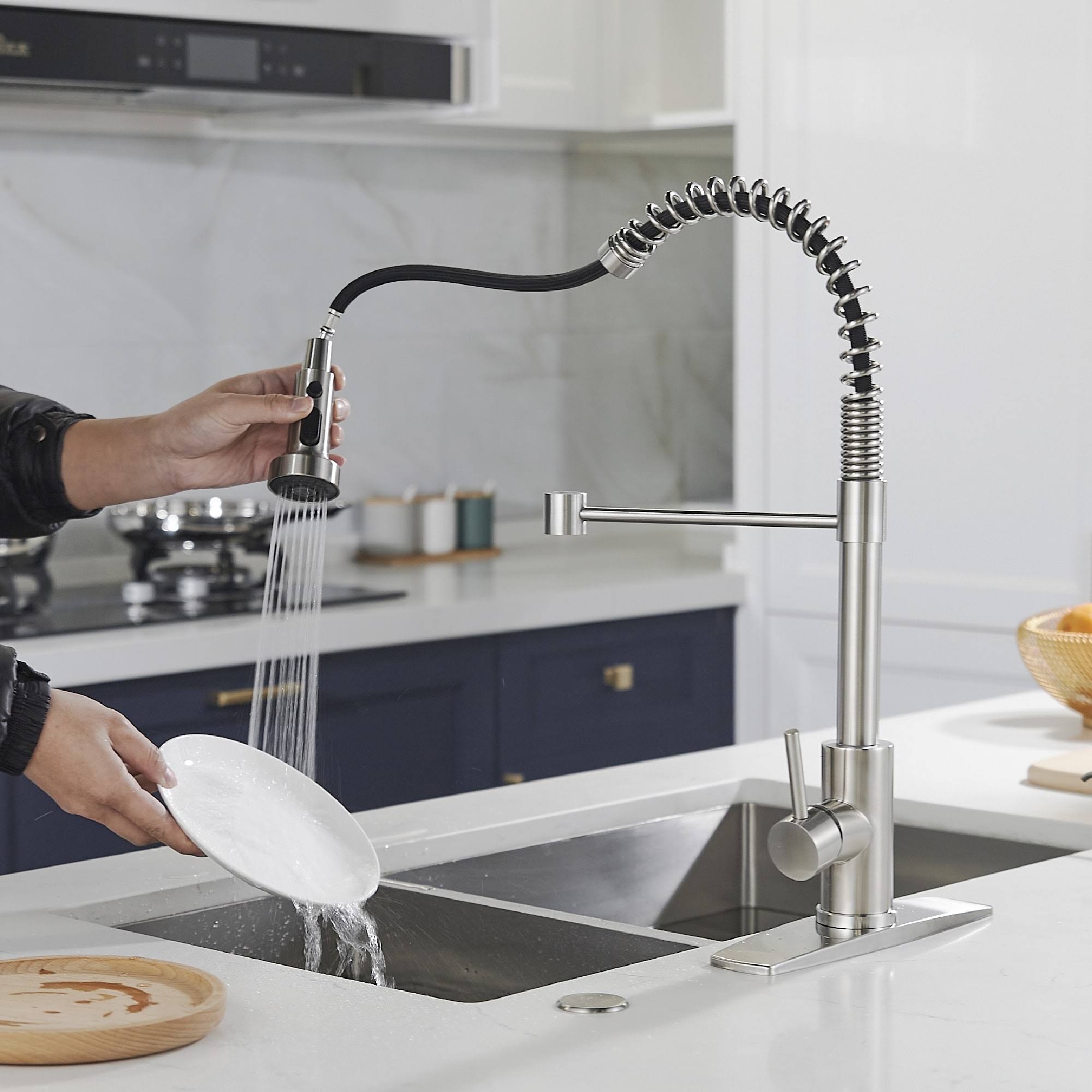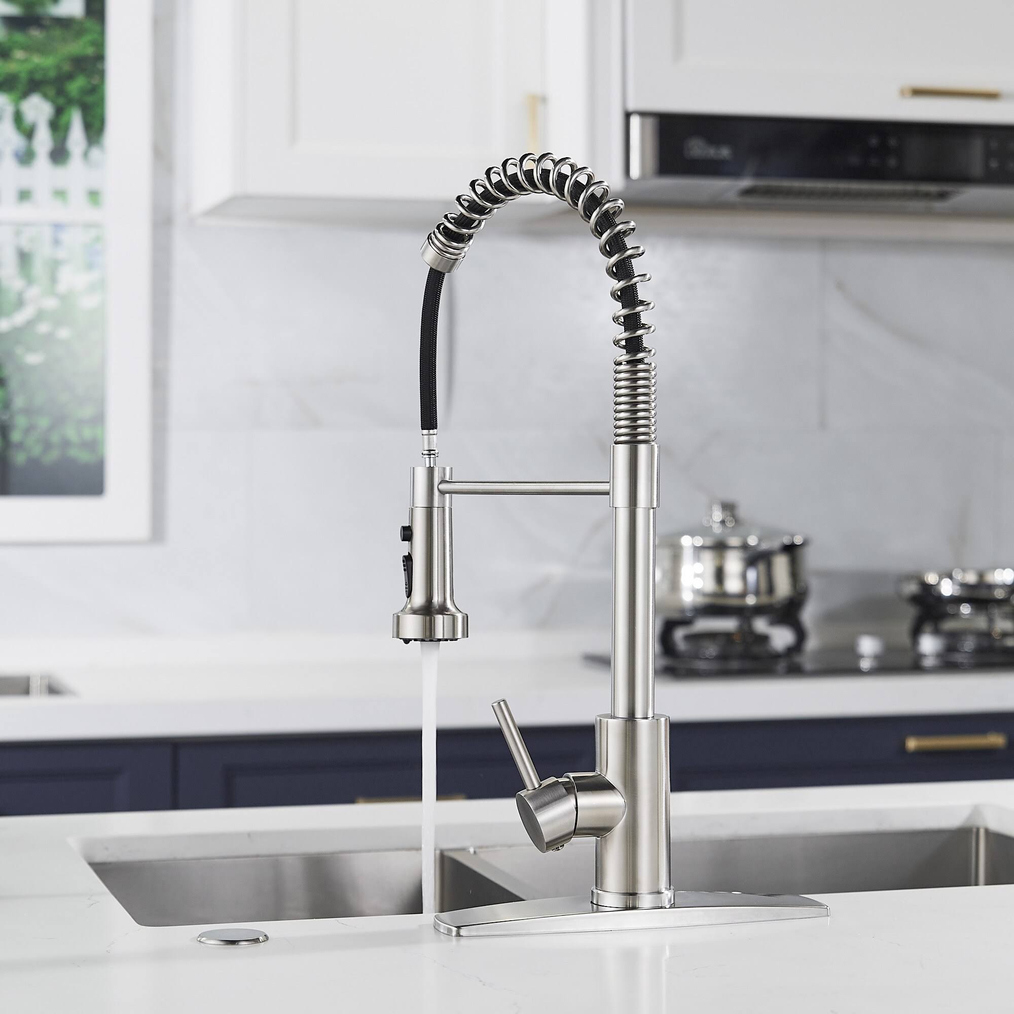 FORIOUS Kitchen Faucet Stainless Steel Single Handle Pull-Down Kitchen Faucet with Deck Plate | LL0024BN